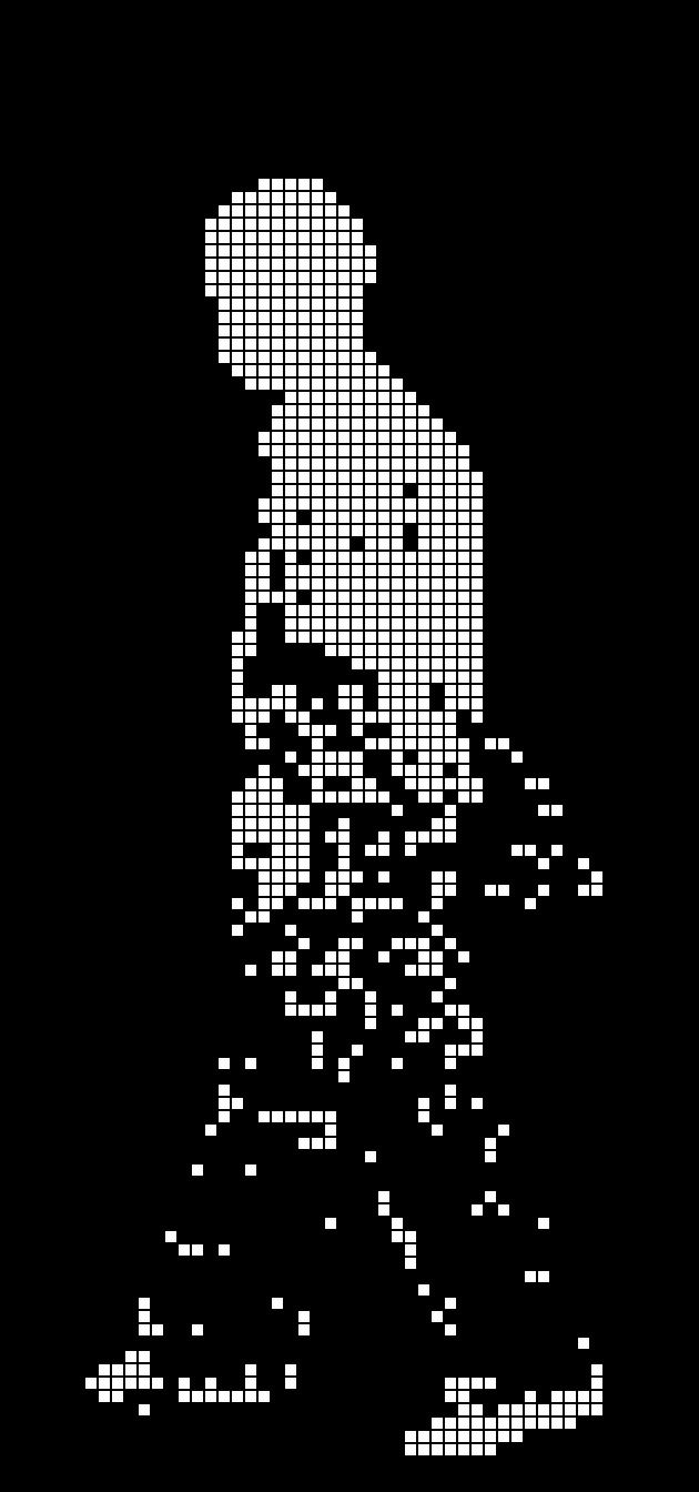 After these horrible, horrible struggles, I then took the background-less video and created a whole lot of PNGs, and then used ImageMagick a lot to get a blocky LED-ey look…