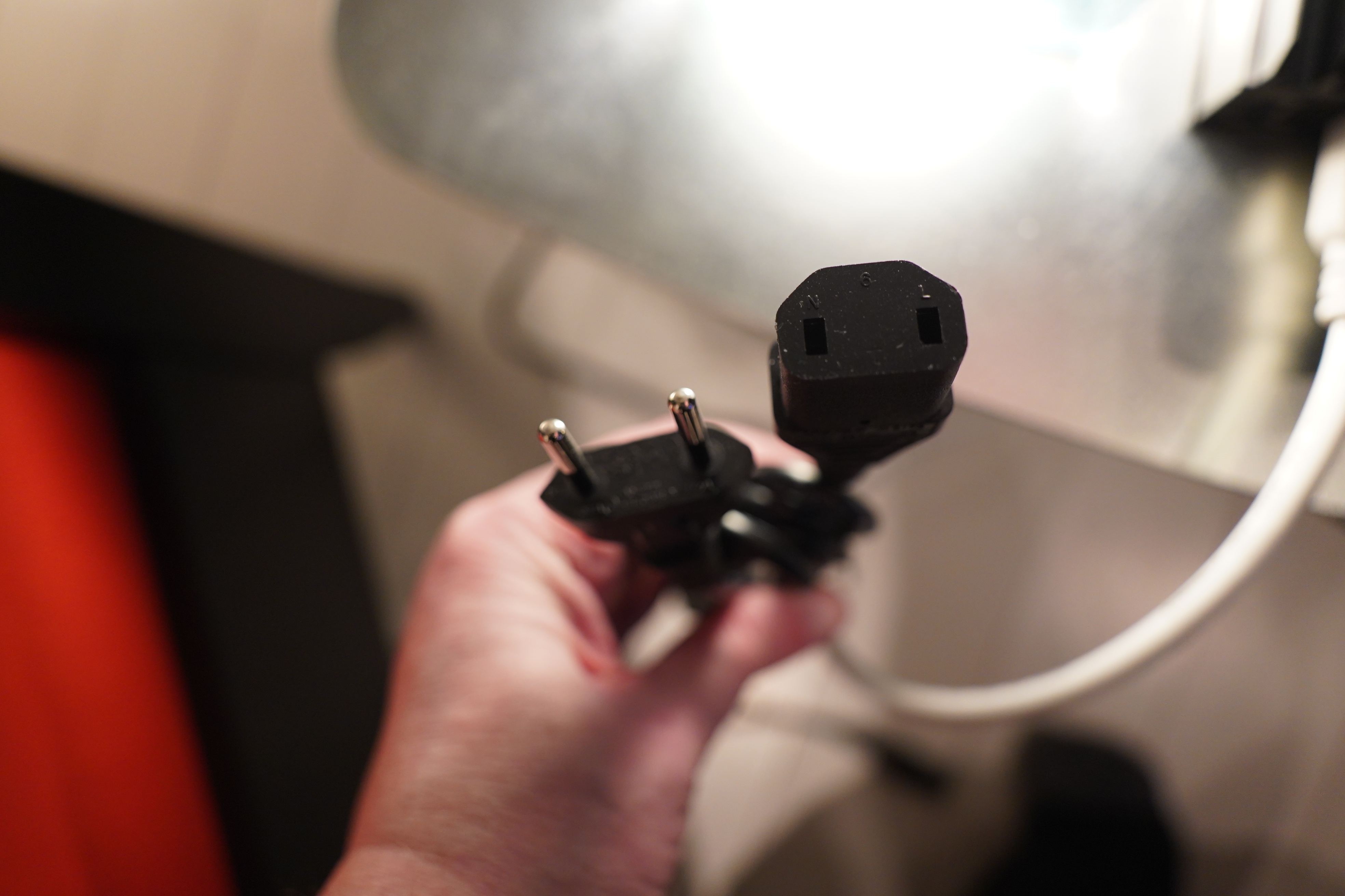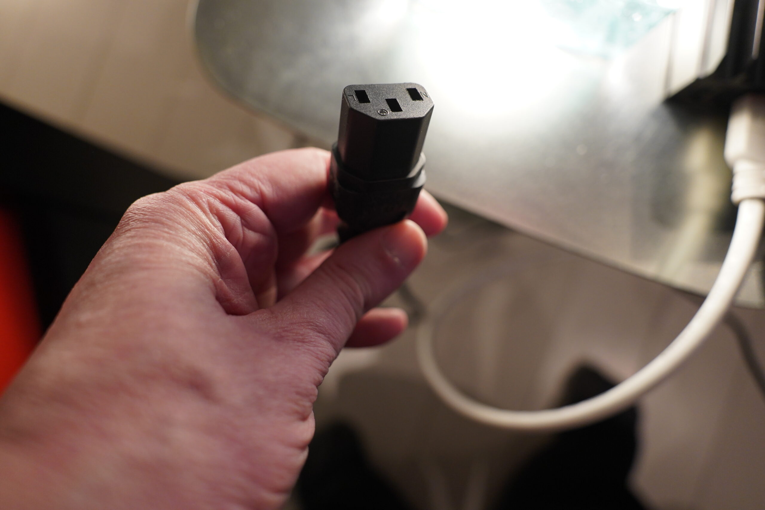 I plugged in a normal three prong thing back there, but it didn’t really say “click”… But I think that’s something that ought to work?