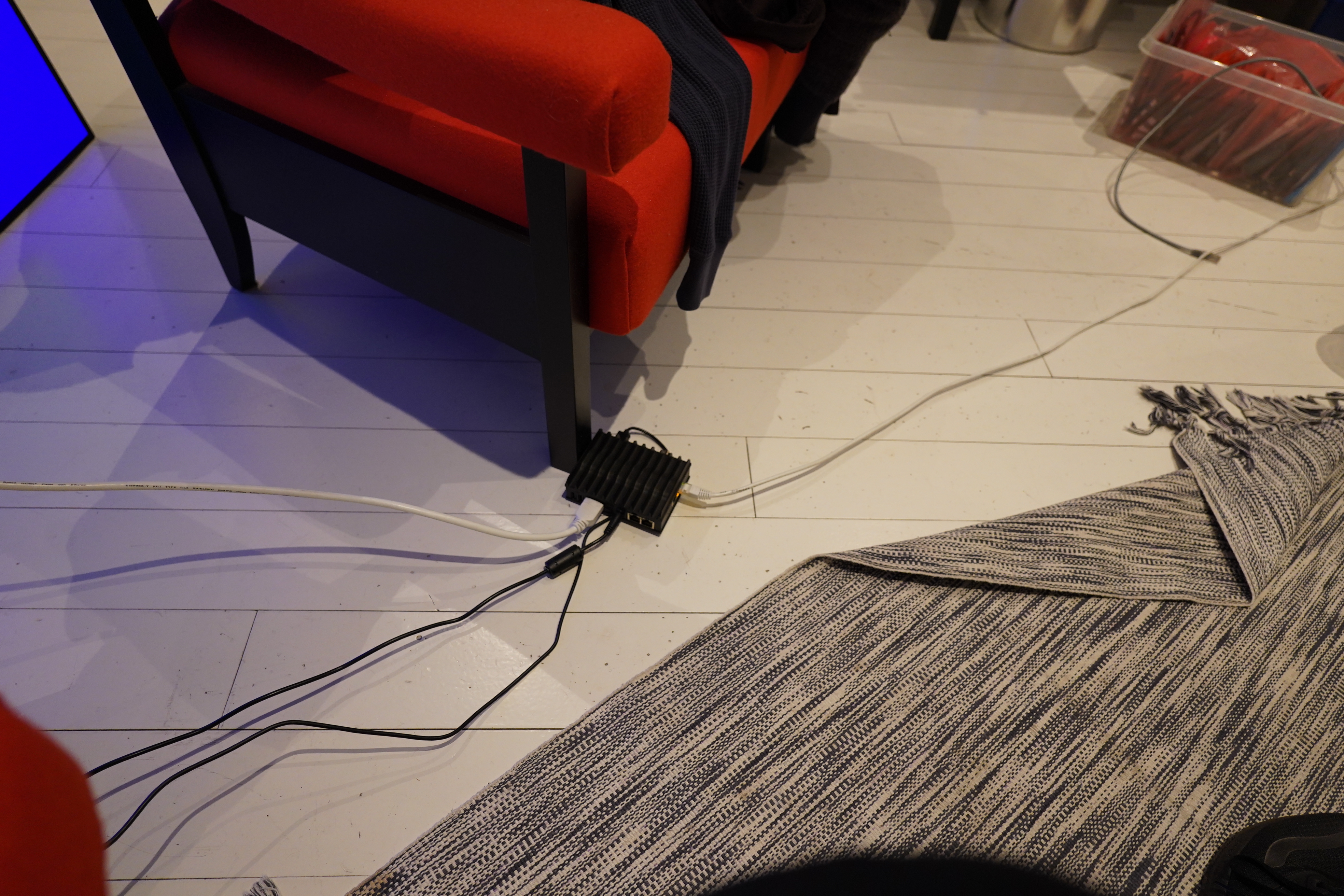 Perhaps I shouldn’t have put the TV up that way before installing stuff, but it’s so heavy that I’m just not bothering to fix that. My neck can complain all it wants.
