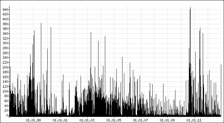 As exhibit A, I present you with a chart detailing the number of non-work emails I’ve sent per week since 1996: