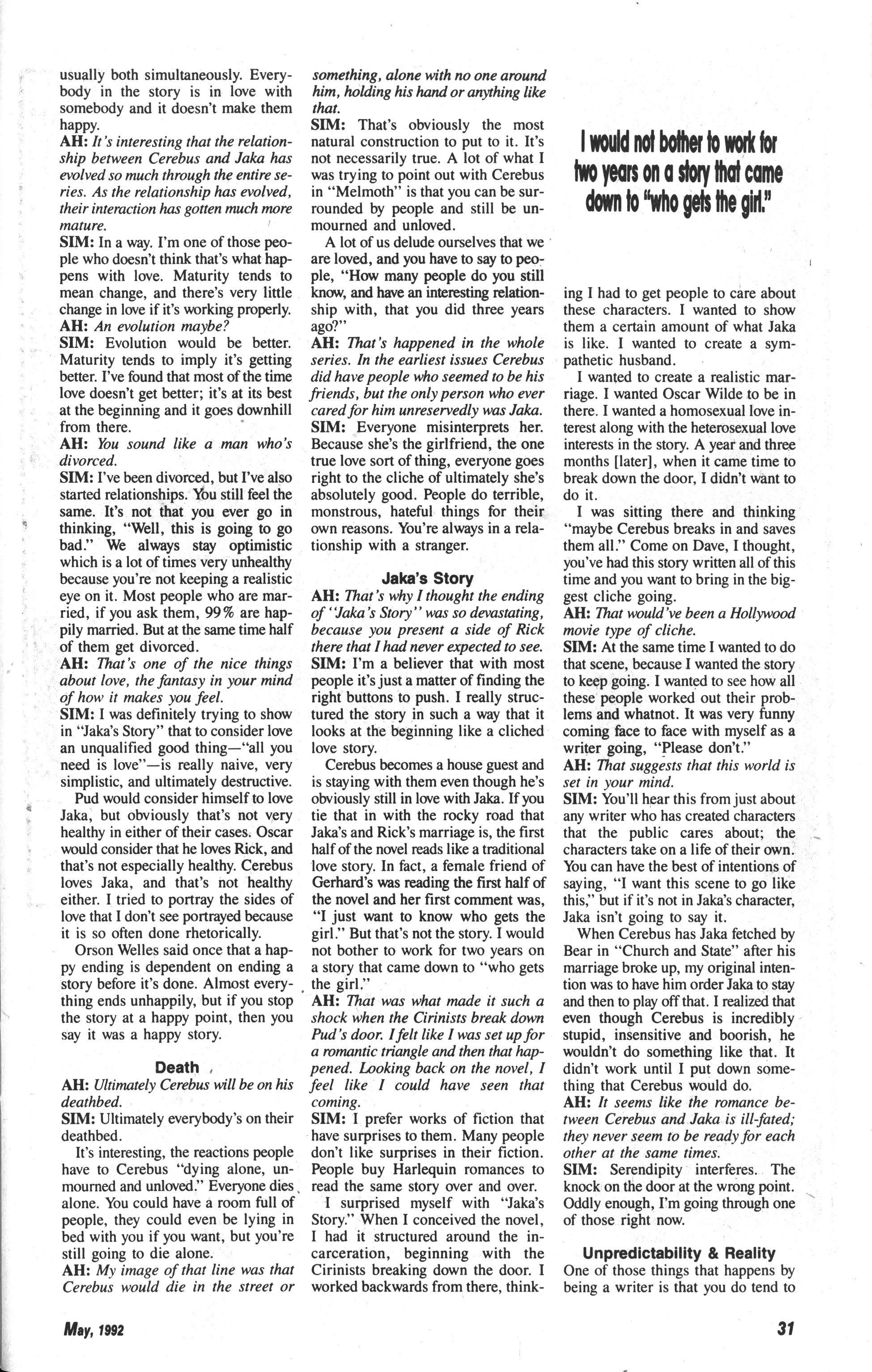 Gary Groth interviews Sim in The Comics Journal #130, page 115: