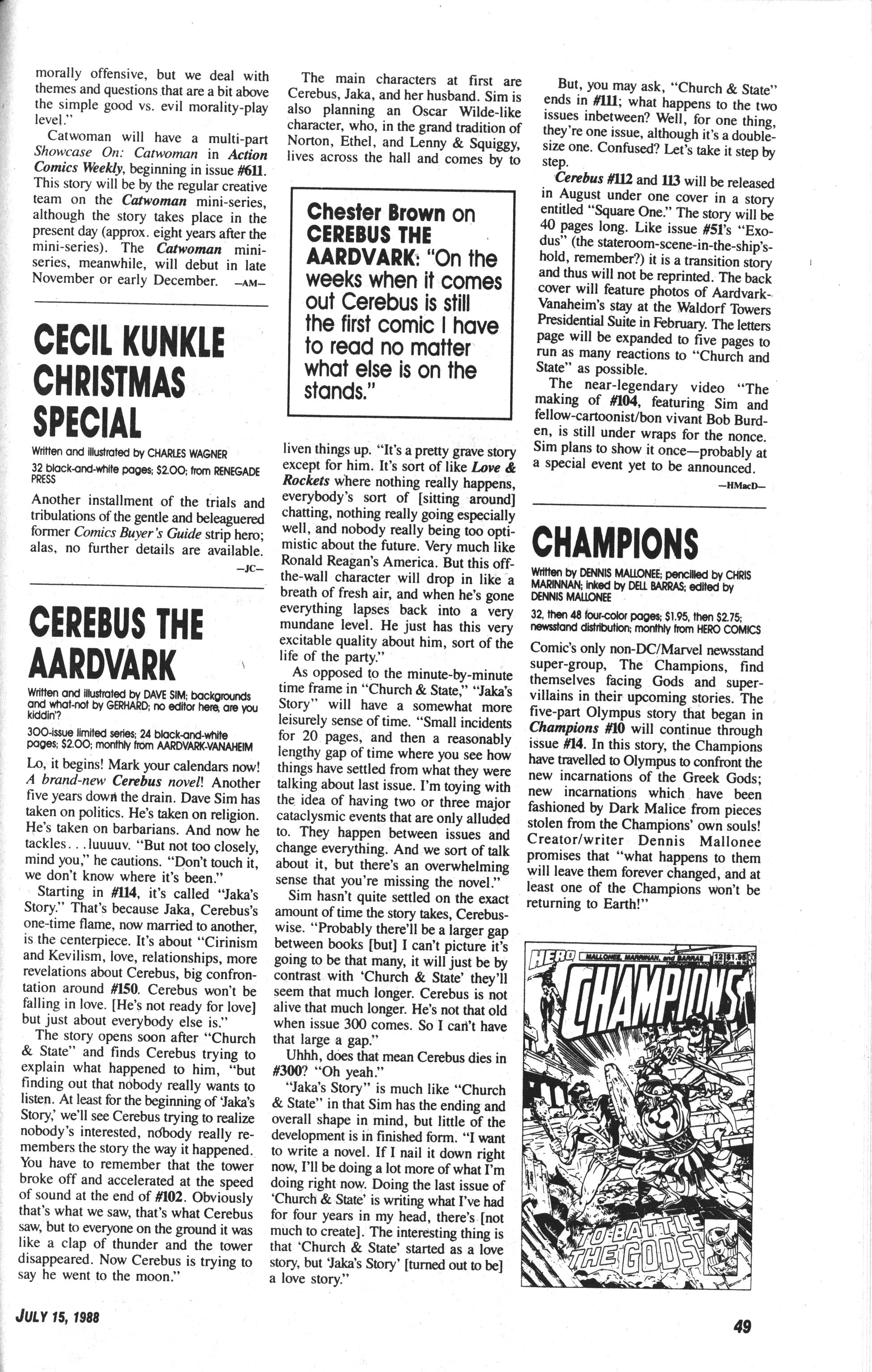Derek McCulluch writes in to ask for, nay, demand payment for Sim reprinting his letters in the Cerebus reprint series.