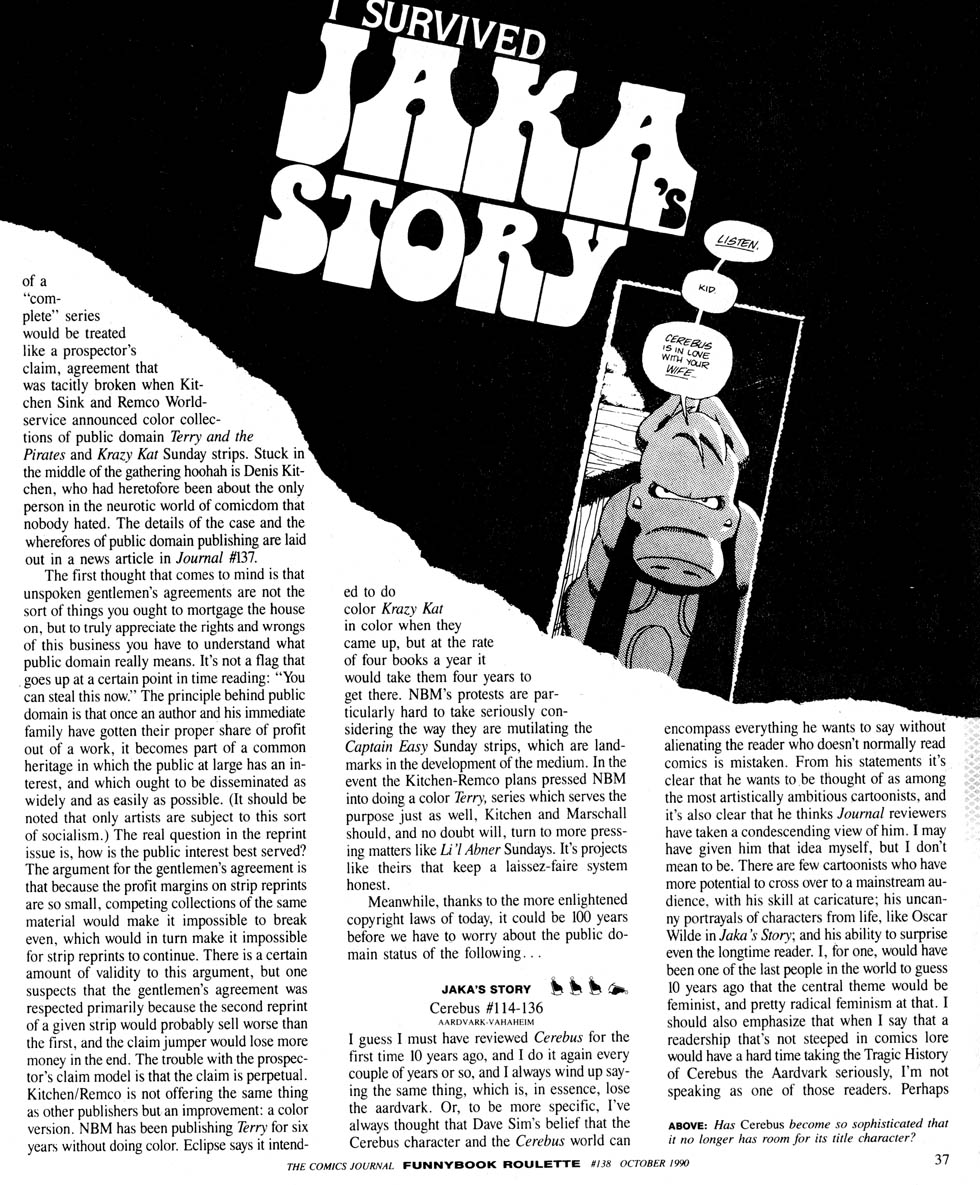 his own; in Jaka Story Cerebus is hardly there.