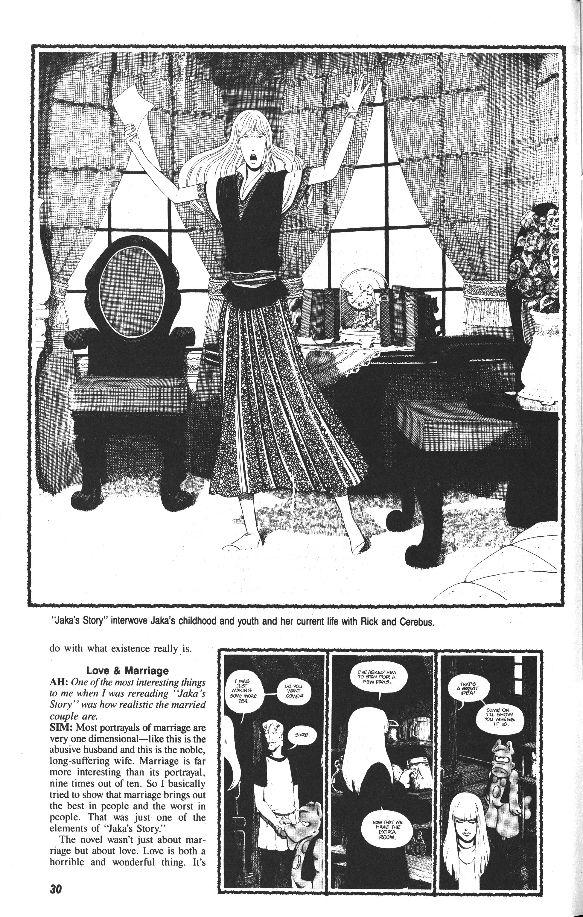 Sim introduces Jaka’s Story by agreeing with Deni’s note (he was her husband at the time) in Cerebus #6 that the issue with Jaka was a wedding present to her. But the story was really about this other woman who was his “mistress” at the time, and that’s who Jaka was based on.