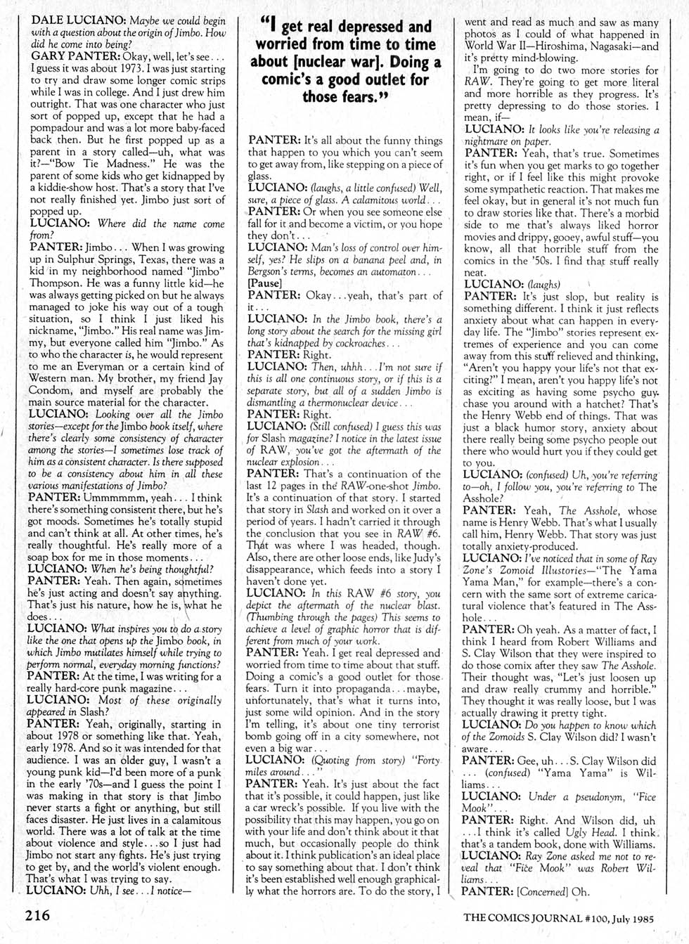 Dale Luciano interviews Panter in The Comics Journal #100, page 216: