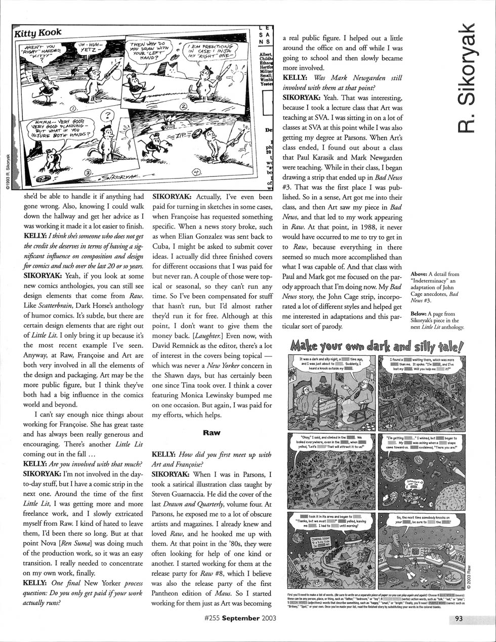 Sikoryak is interviewed in The Comics Journal #255, page 95: