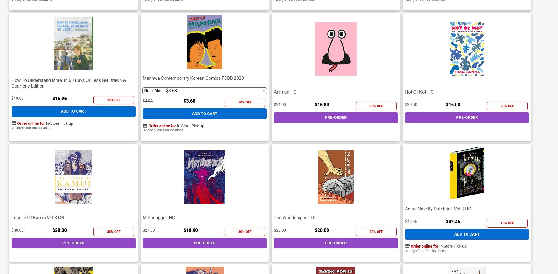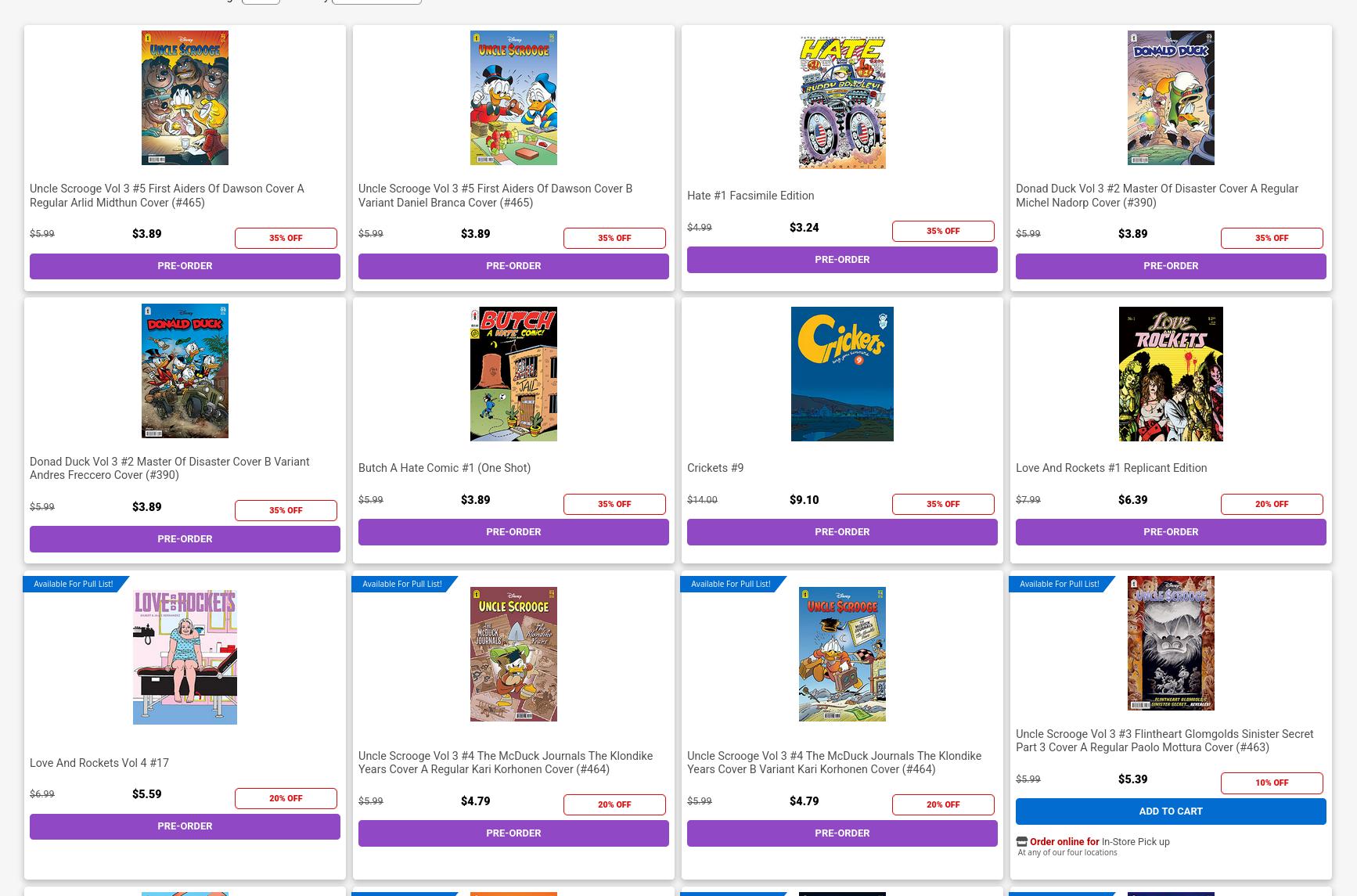 If I go to Midtown and look at the preorders for, say, Fantagraphics, I get the above. 11 books. And of those, 6 are Disney things, and two are facsimile reprints.