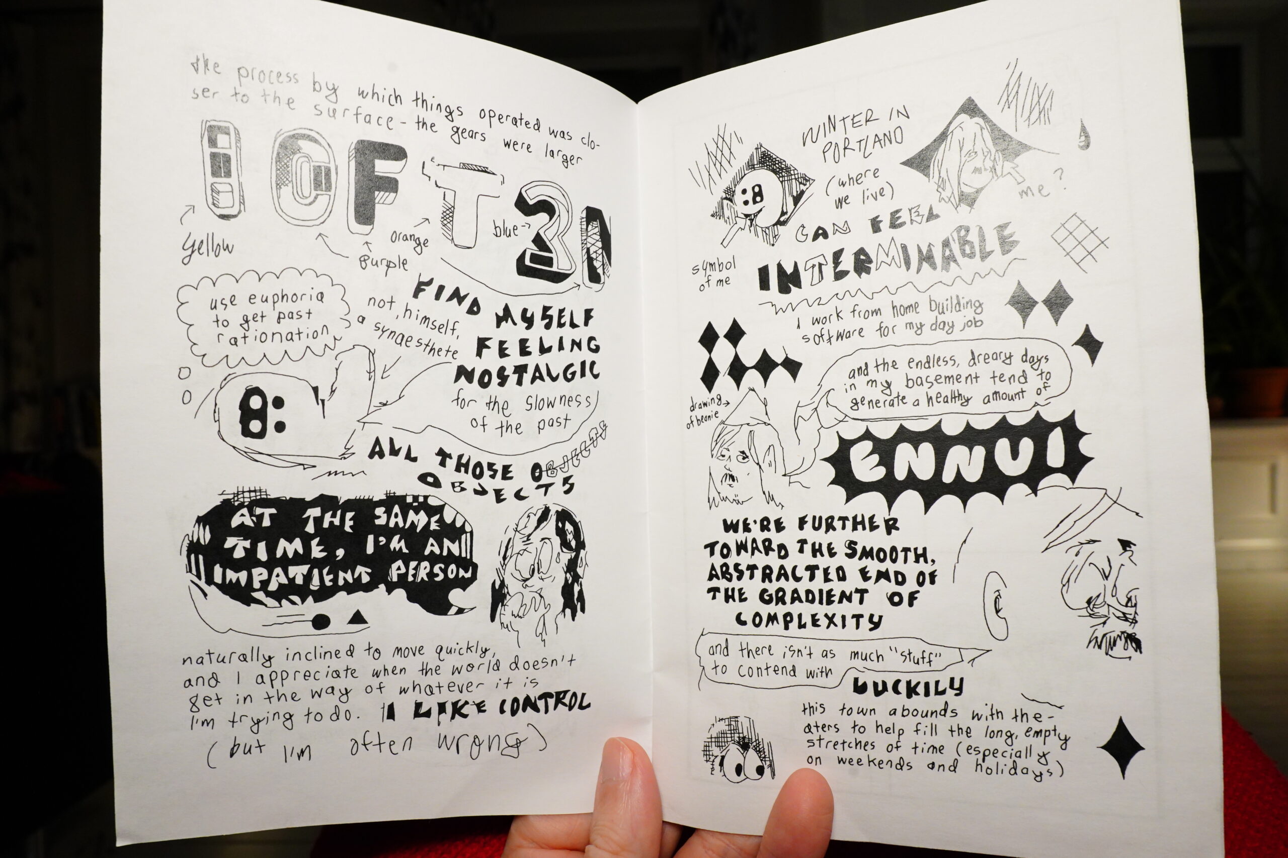 Yay! Heather Loase! She’s brilliant. And this mini is very funny — it’s a classic procrastination comic (“I don’t know what to write” thing), but it works anyway.