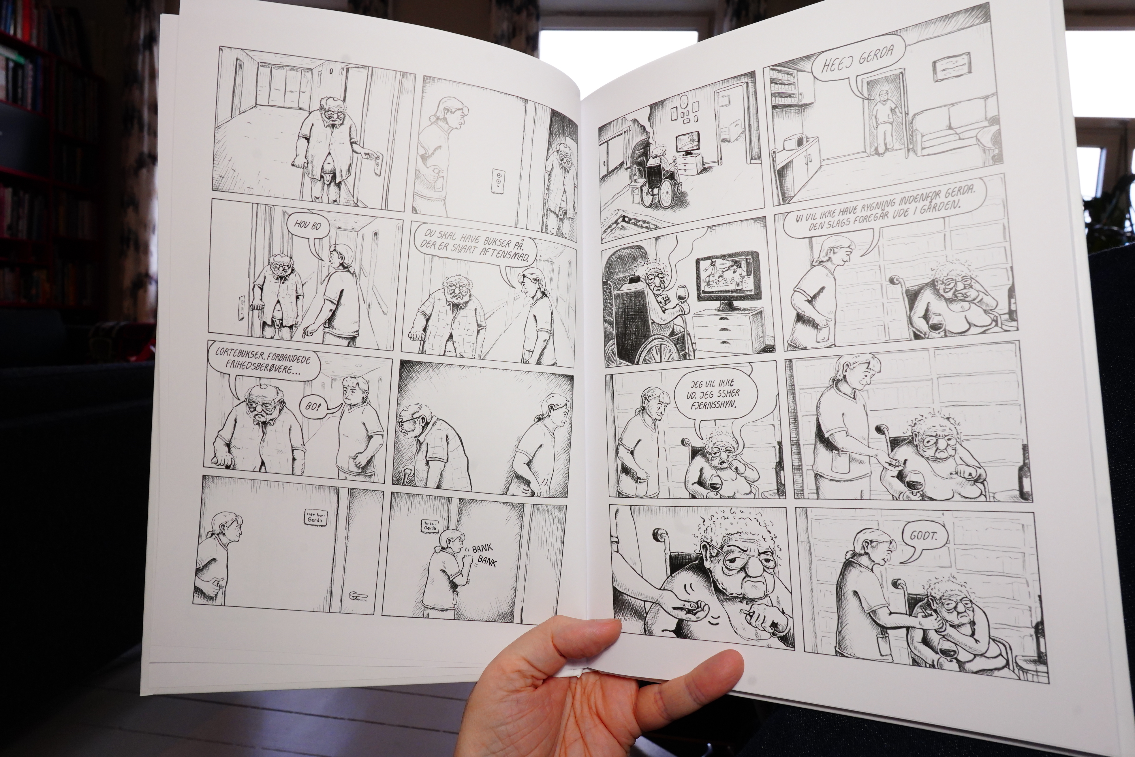 It pretty miserable — I mean, it’s totally realistic: Some senile people, some very quarrelsome people, and some are just depressed. There’s no “plot” as such, and while reading this I was thinking “but where is this going?” And it’s not really going anywhere, but it’s moving anyway.