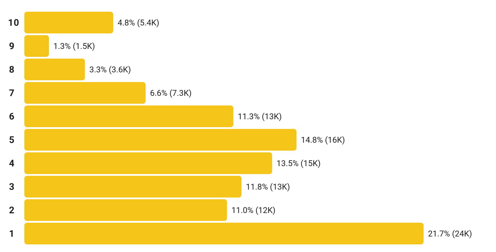 But you almost never see ratings charts like this on Goodreads. Because you rarely have brigading going on there, while on imdb it’s pretty common — whenever a movie goes viral for being soooo bad (in one forum or another), you have all these morons going on imdb and rating pretty mid movies “1”. (Or “10” in the opposite case.)