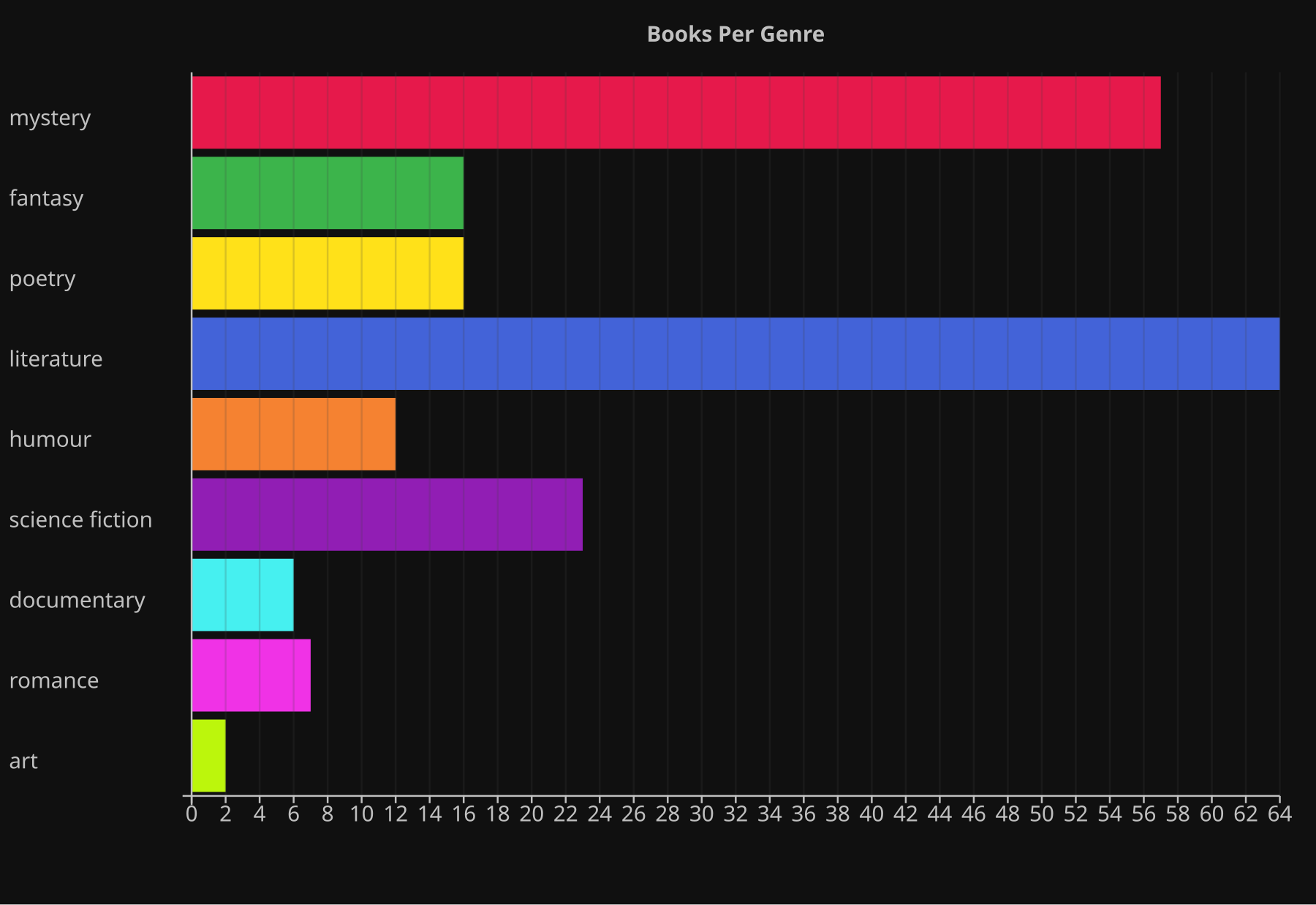 That’s how many books per genre I read (or skipped; I dropped 15 of these books mid-reading). I thought the literature/junk ration would be lower…