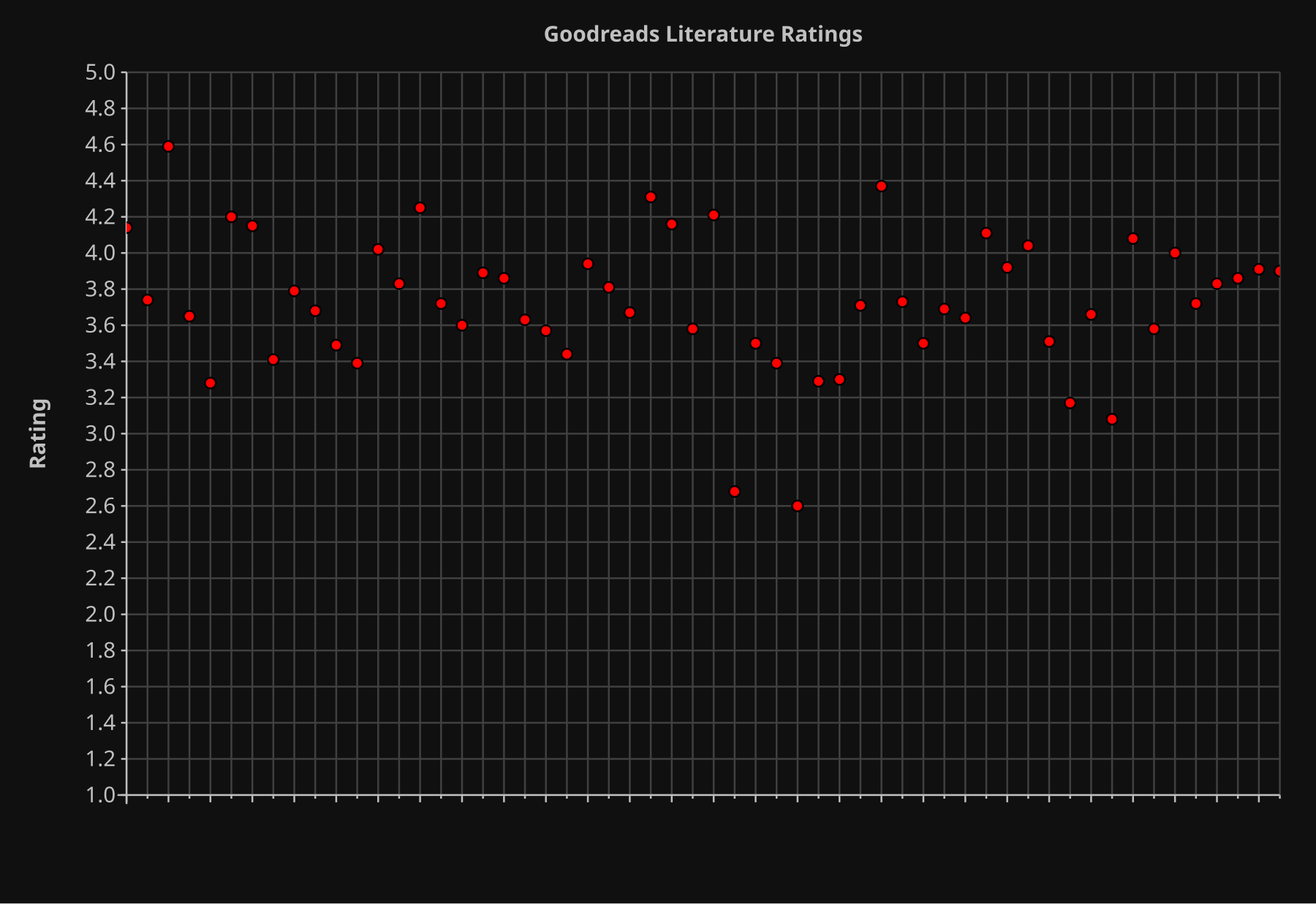 I read a lot of books this year, and I had Emacs record the Goodreads rating for every book. So now I have data! Behold: