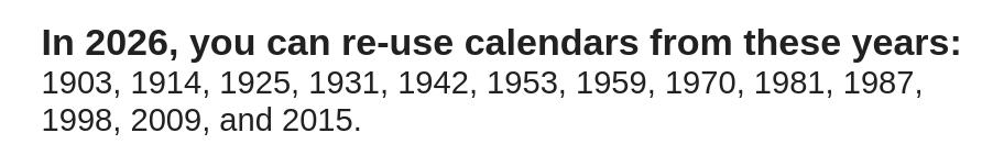 I started wondering, out of the blue, which years had the same calendar as this year.
