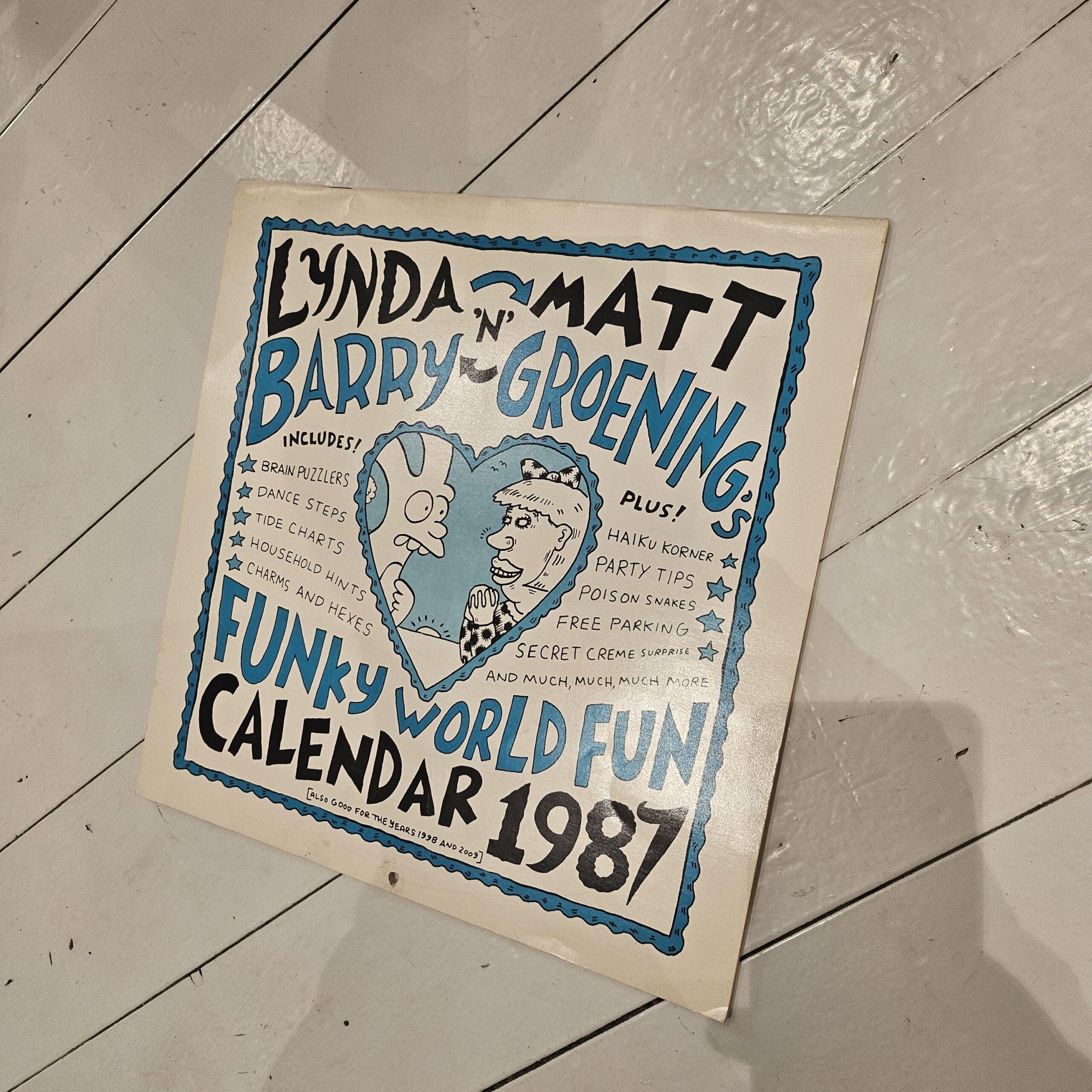 And the Lynda Barry ‘n’ Matt Groening Funky World Fun Calendar 1987 was already made with re-use in mind: It says “also good for the years 1998 and 2009”, but they didn’t think far enough ahead.