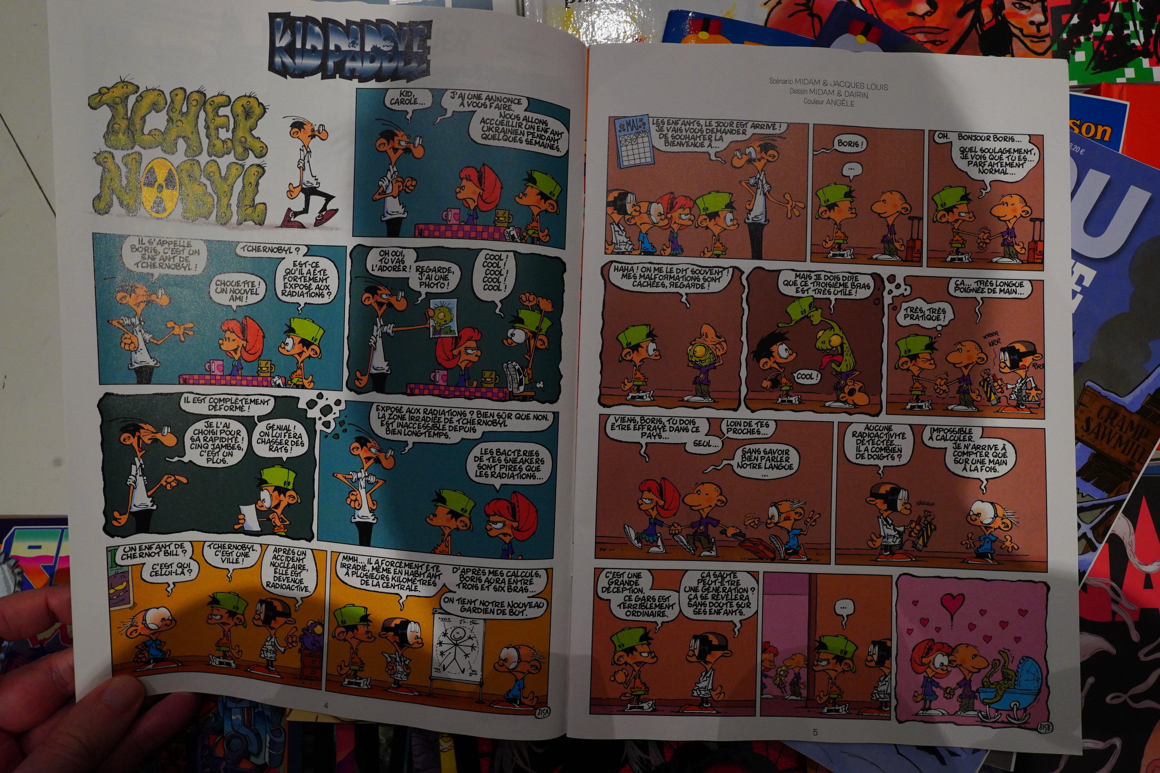 How current affairs-ey! Kid Paddle’s family takes in a Ukrainian refugee (from Chernobyl). (It turns out (on subsequent pages) that everything isn’t fun about a nuclear disaster anyway.)