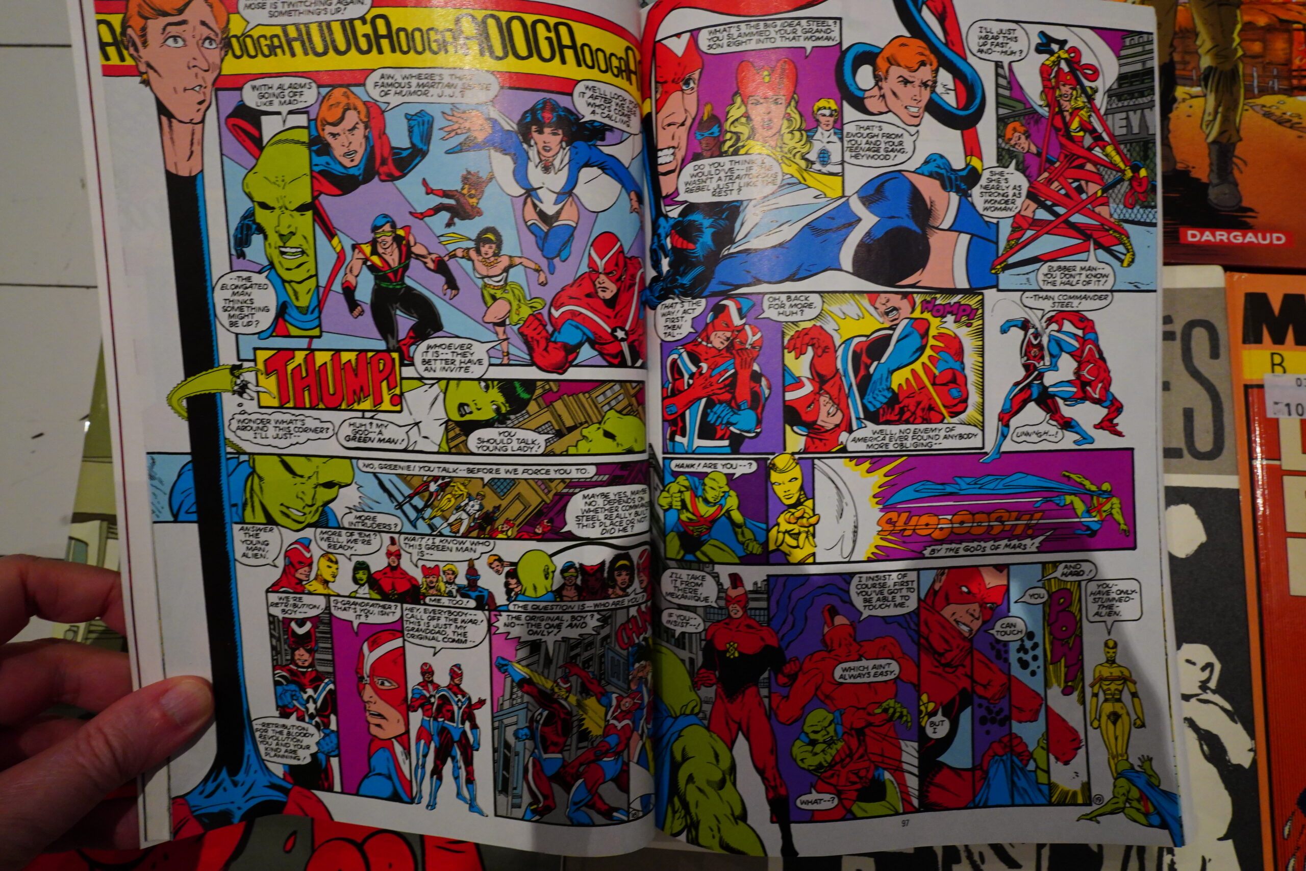 So when this book starts out, the League lives in Detroit (!), and has members like… Vixen… Vibe… Gypsy… and Dale…
