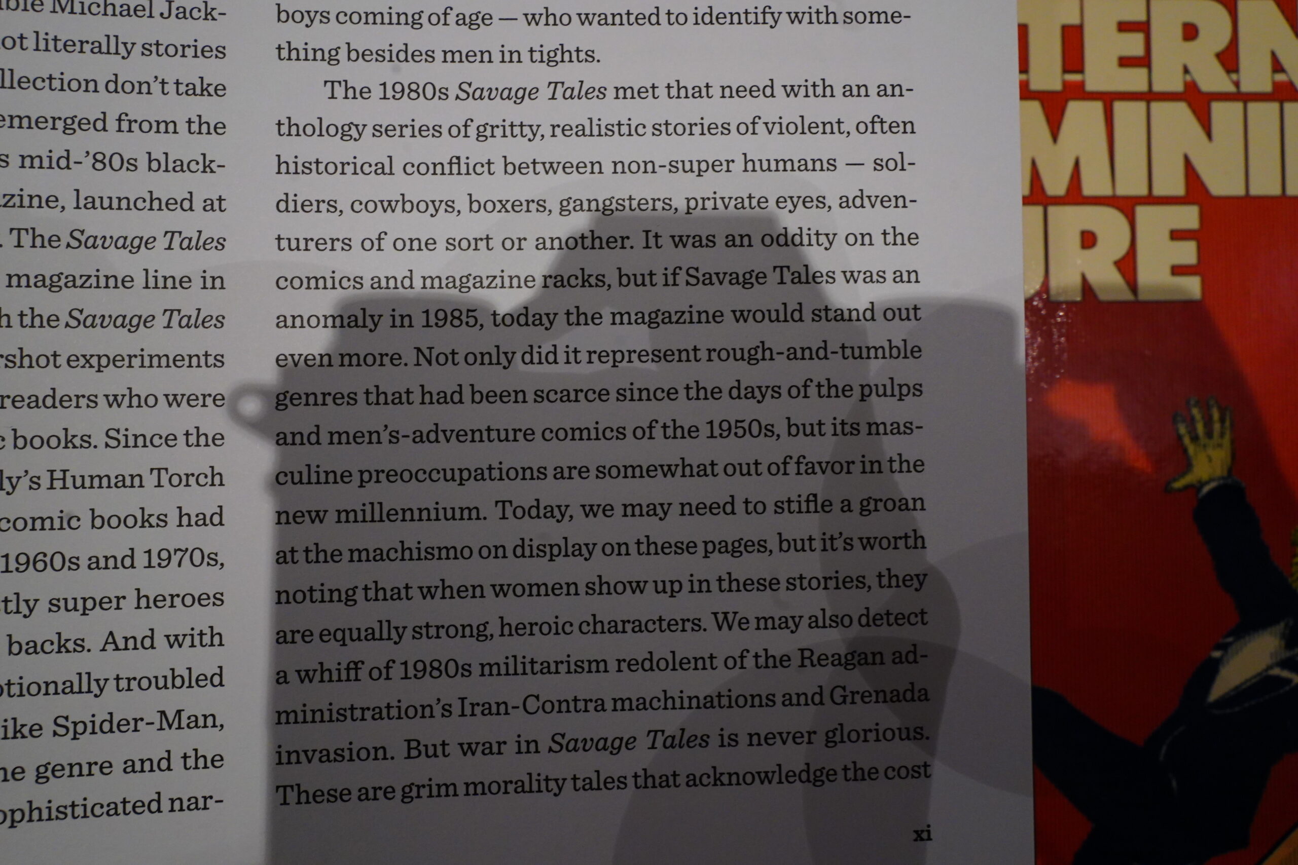 Michael Dean writes in the introduction that Savage Tales was “gritty, realistic”, and that we may “groan at the machismo”, and that it has a “whiff of 1980s militarism”… but of course, the women are just as kick ass, and the war isn’t glorified, oh no! Which makes me wonder whether he’s actually read the book, because as a letter writer said, “[t]o put it bluntly, I like blood and guts, and you put them right in the palm of my hand”.