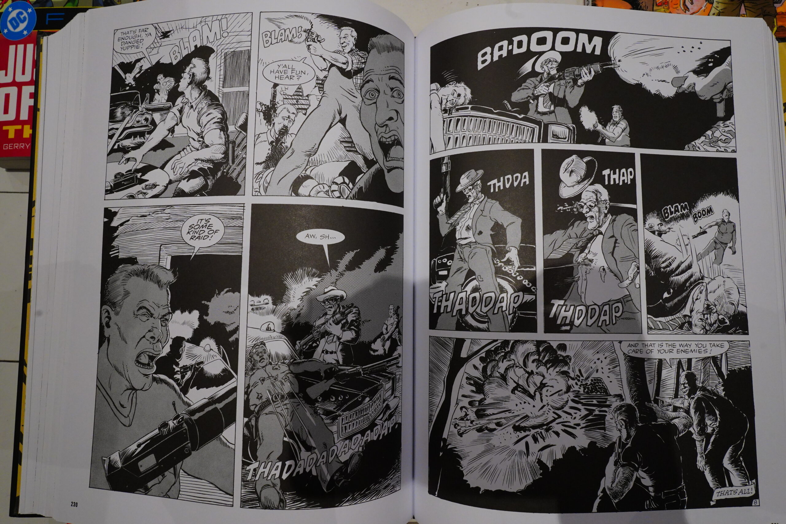 Sure, since this is an anthology with stories that are about ten pages long, and this book is almost 600 pages long, a couple of stories about other things is in here, too, but the majority are just about depicting violence. Which makes the book rather interesting — you avoid the trite O. Henry endings that have been done to death ever since EC Comics.