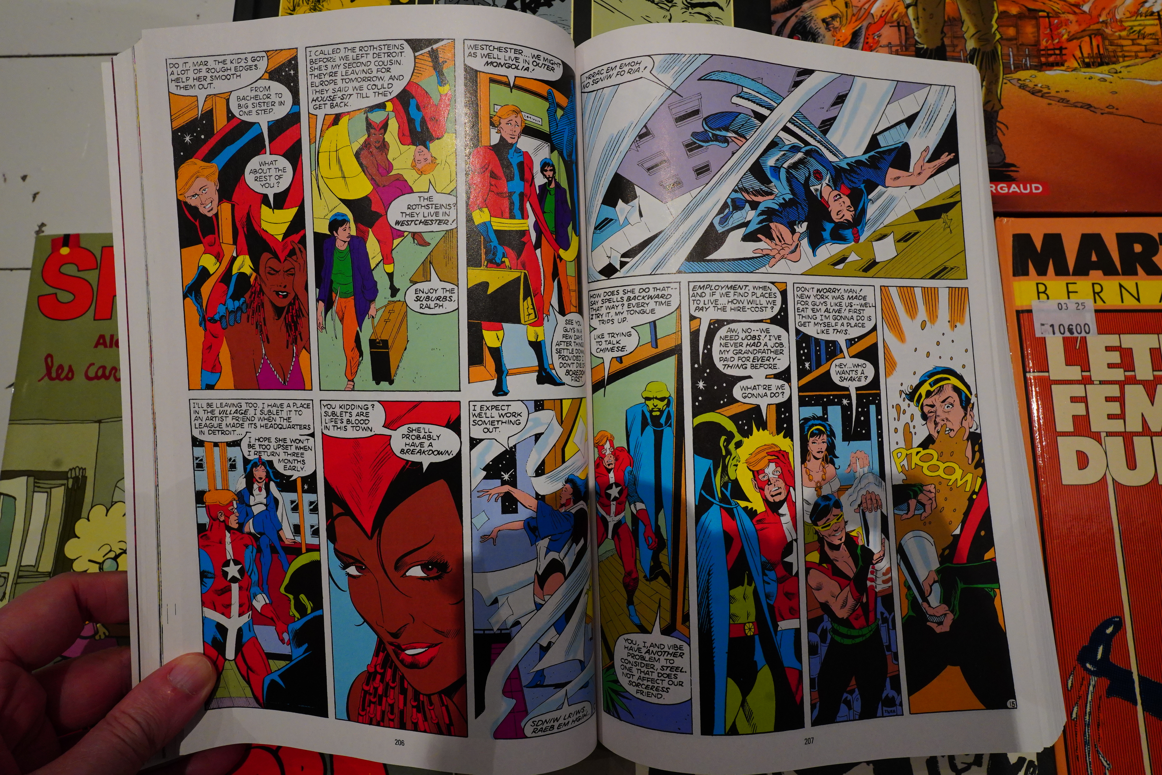 So when this book starts out, the League lives in Detroit (!), and has members like… Vixen… Vibe… Gypsy… and Dale…