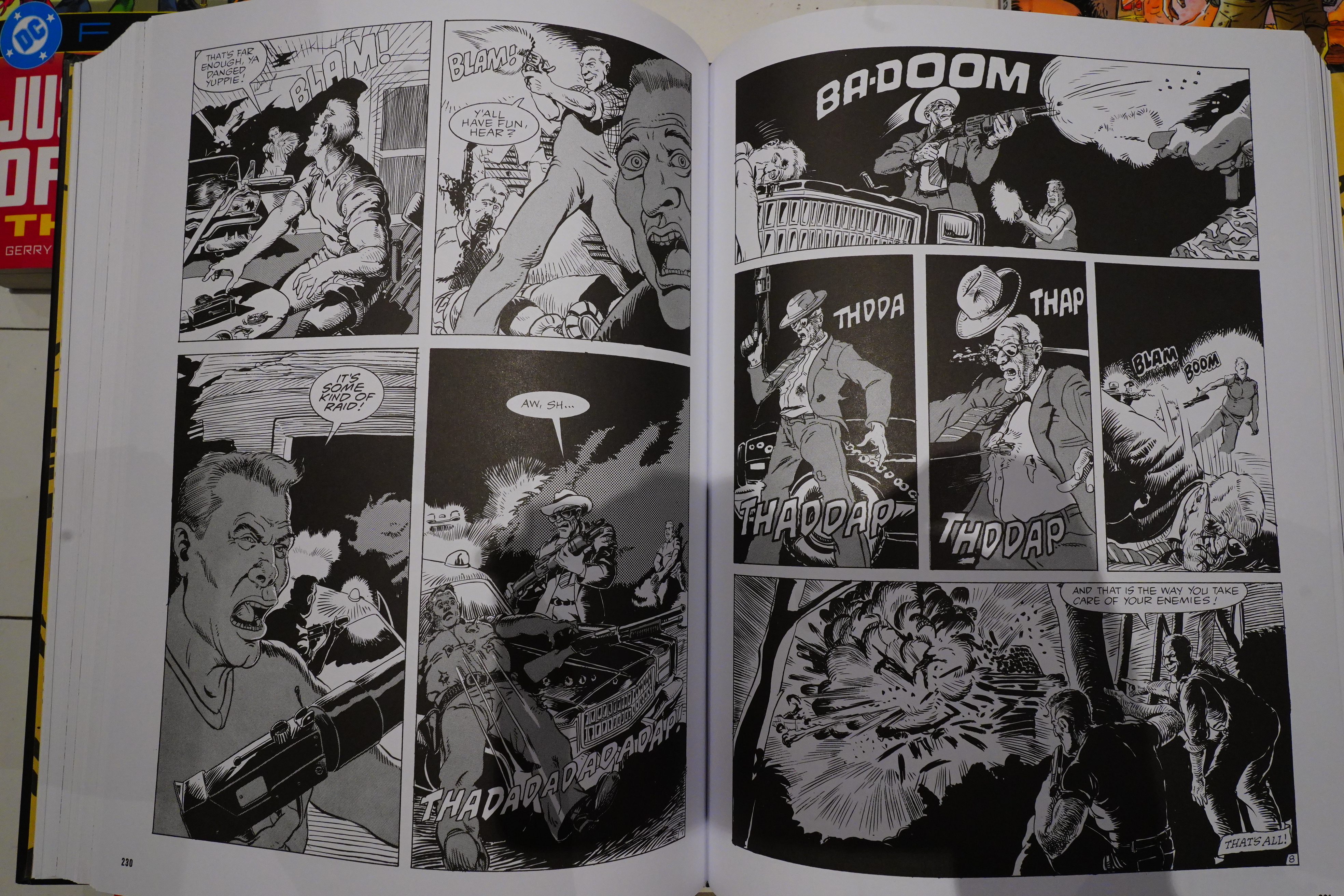 Sure, since this is an anthology with stories that are about ten pages long, and this book is almost 600 pages long, a couple of stories about other things is in here, too, but the majority are just about depicting violence. Which makes the book rather interesting — you avoid the trite O. Henry endings that have been done to death ever since EC Comics.