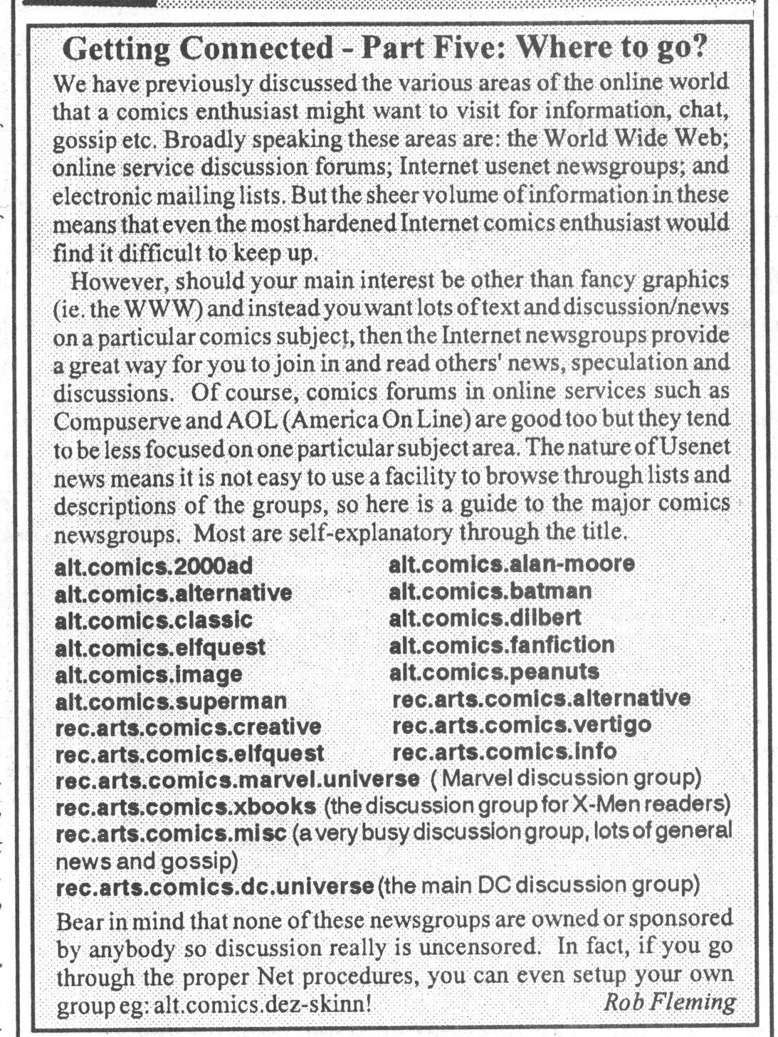 I was scanning some 1996 issues of Comics International and it turns out that each issue has a recap of what’s been going on on the Internet that month (comics-wise).