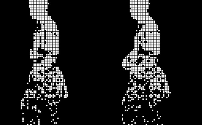 Now, interpolating film usually looks pretty bad — artifactey and smeared — but in this case I have a 200×100 grid of monochrome pixels, so interpolation means “just move these blocks around a bit to be more in the position they should be in the next frame”, right? So perhaps it’ll look interesting?