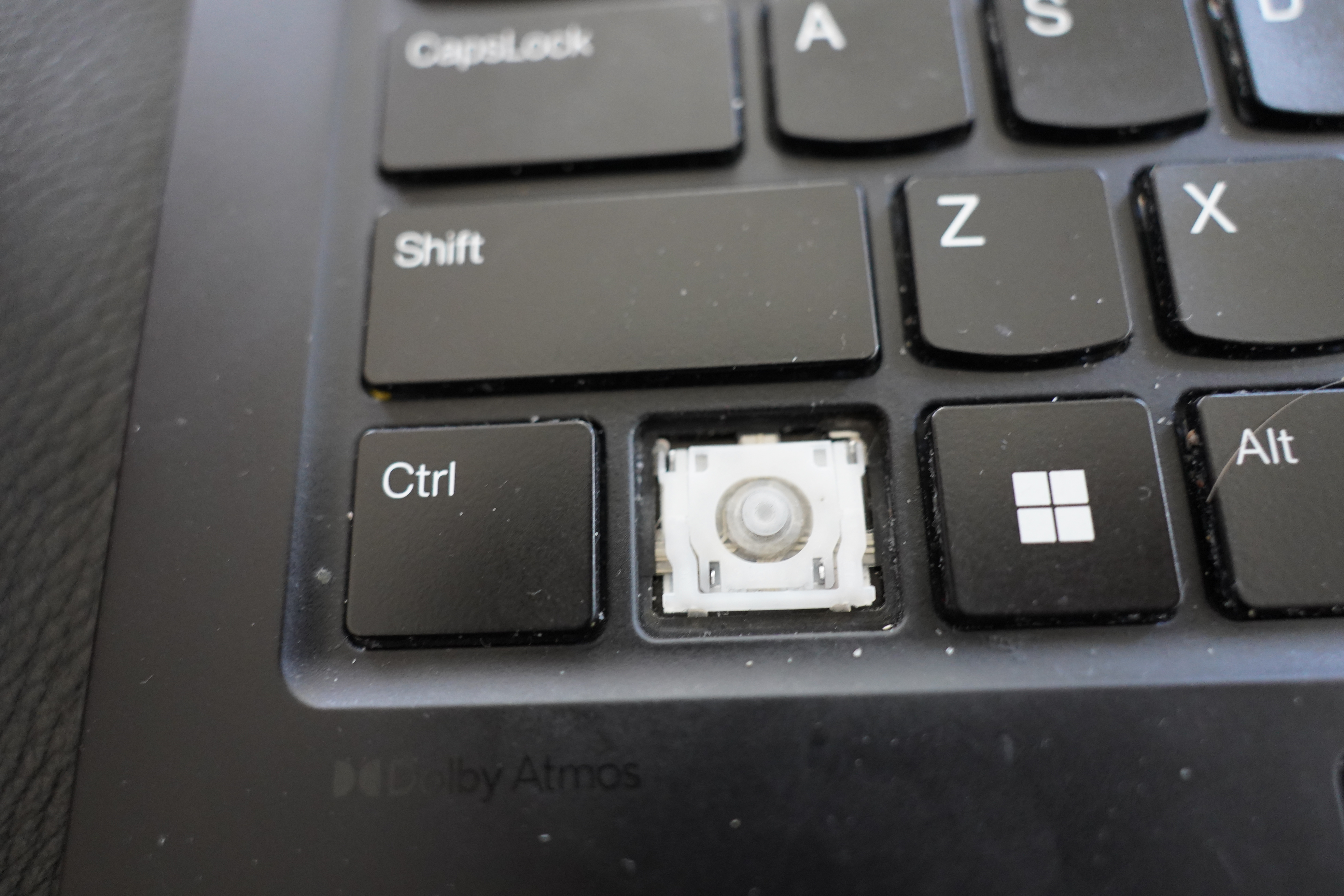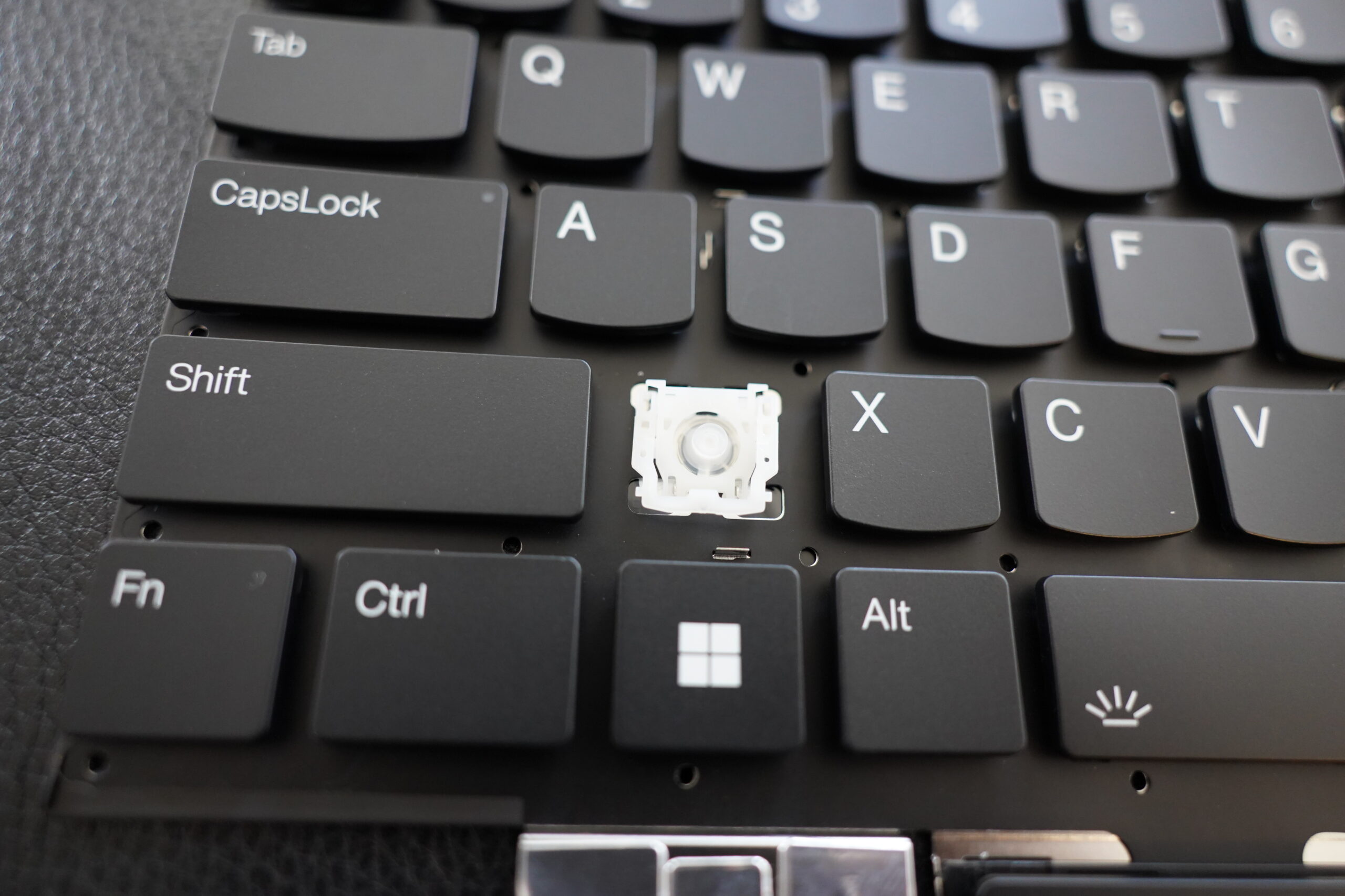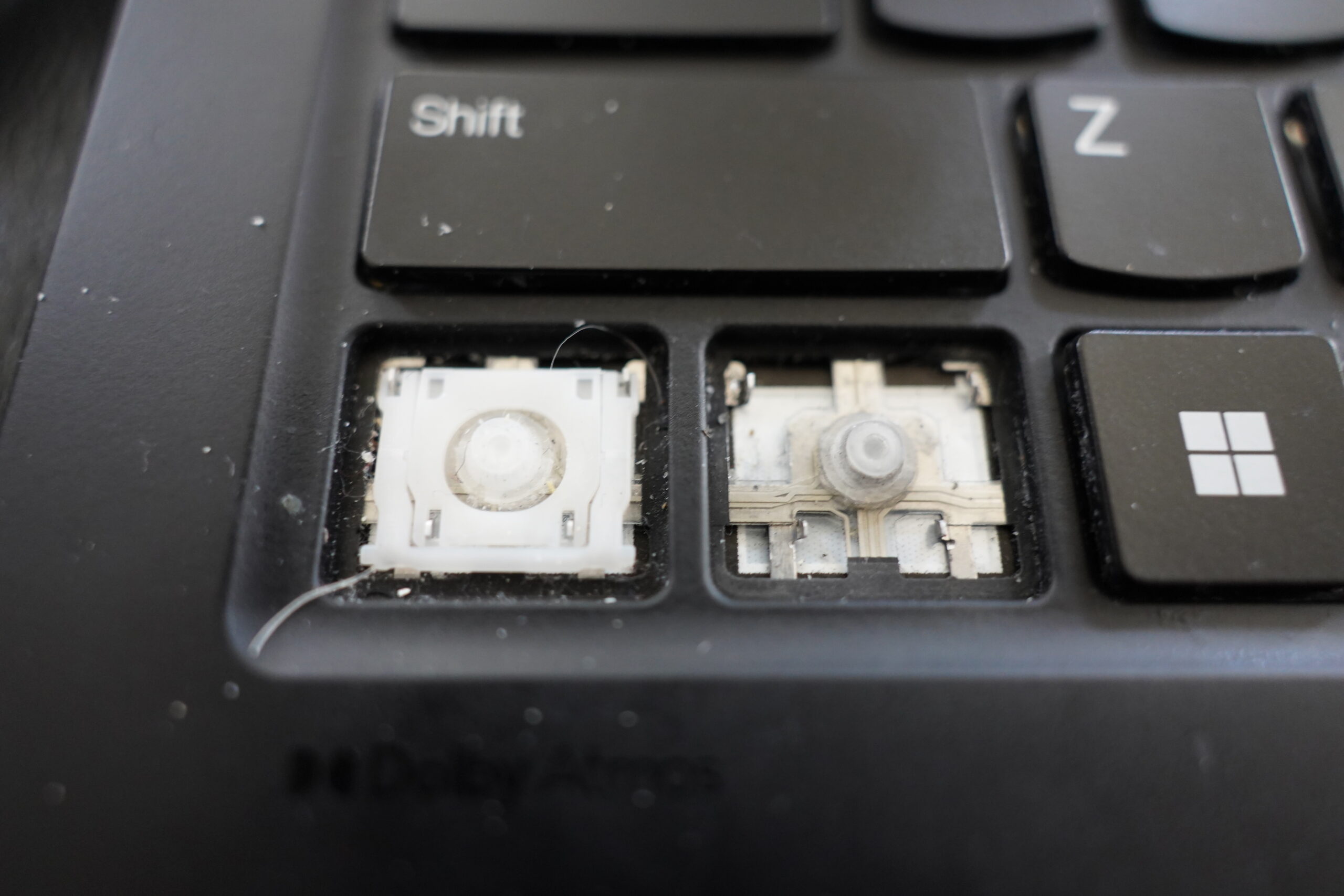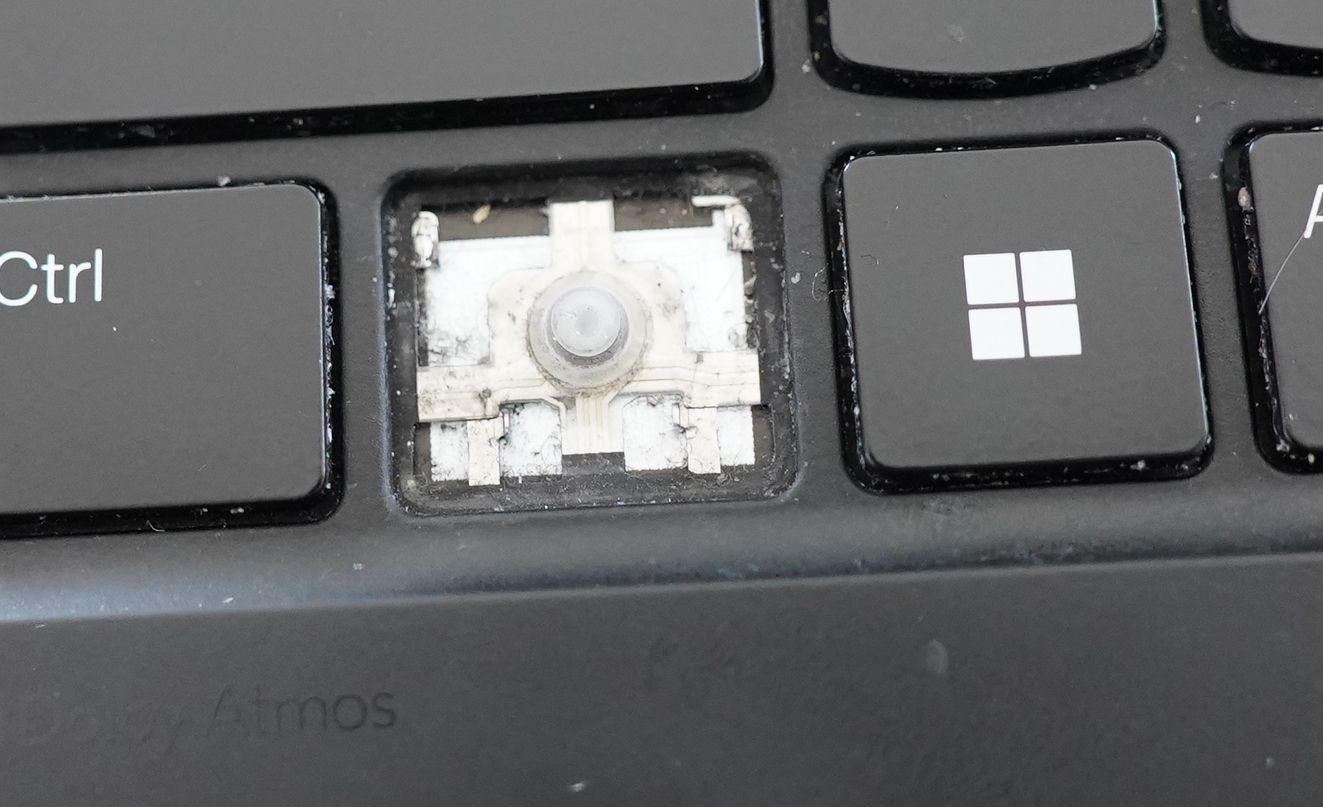 Oh, I just remembered that I have a replacement keyboard for a previous laptop generation lying around… perhaps I can just pop a cap here, and take the hinge?