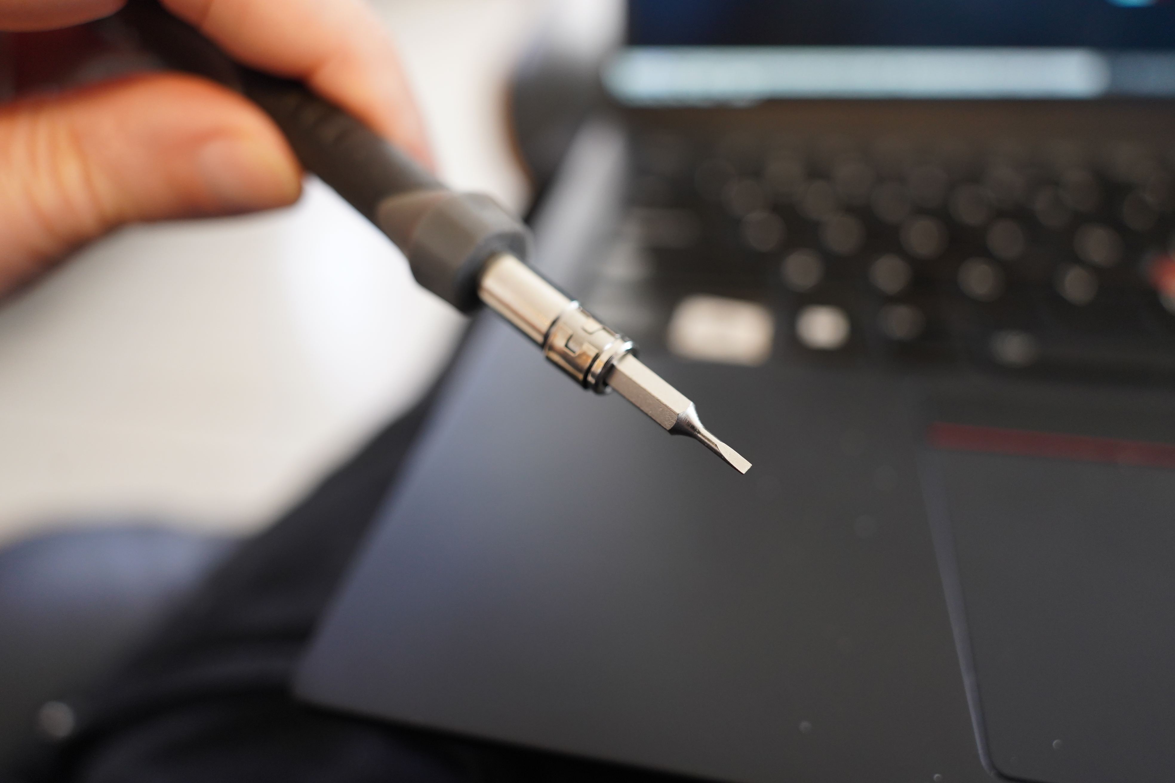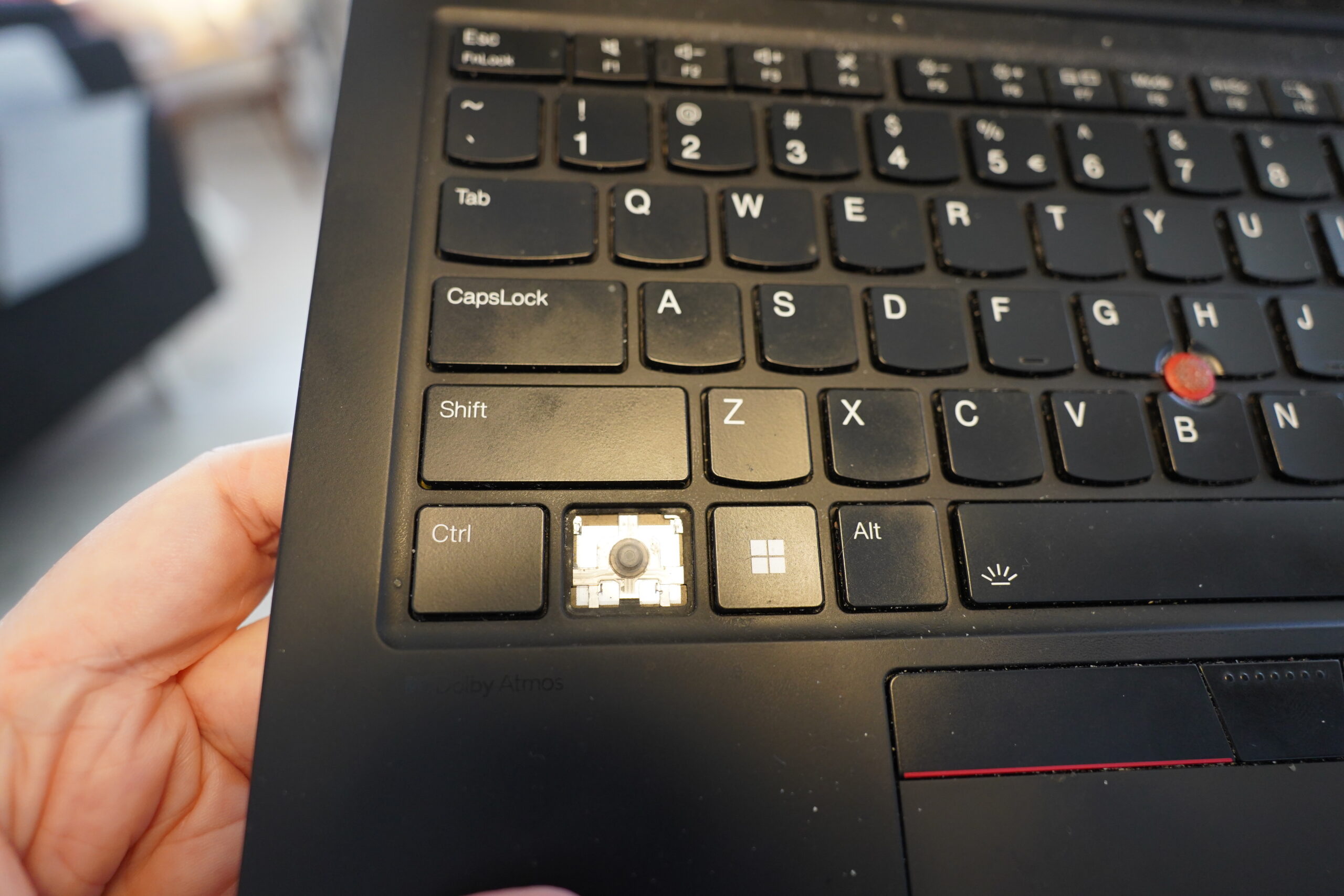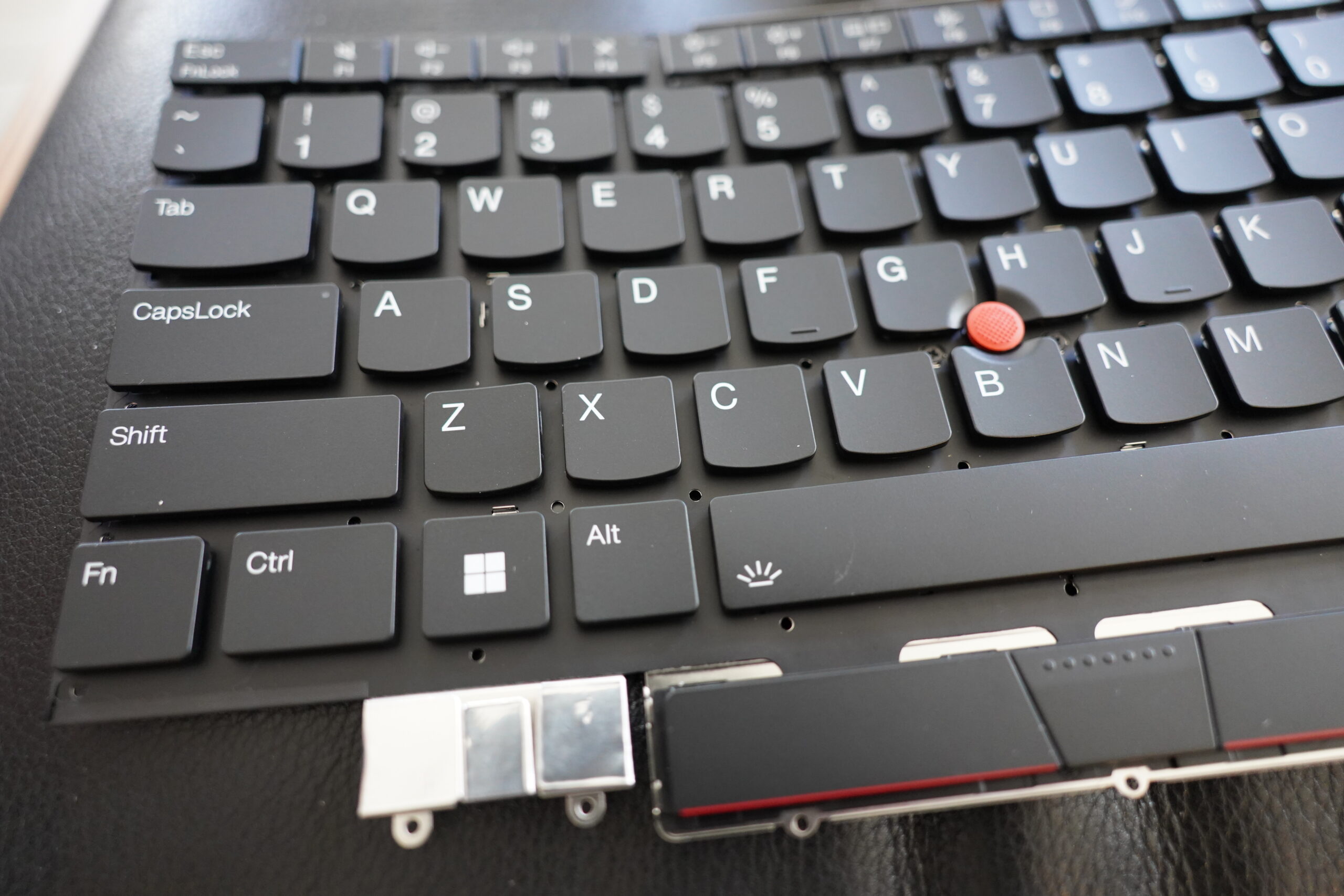 Oh, I just remembered that I have a replacement keyboard for a previous laptop generation lying around… perhaps I can just pop a cap here, and take the hinge?