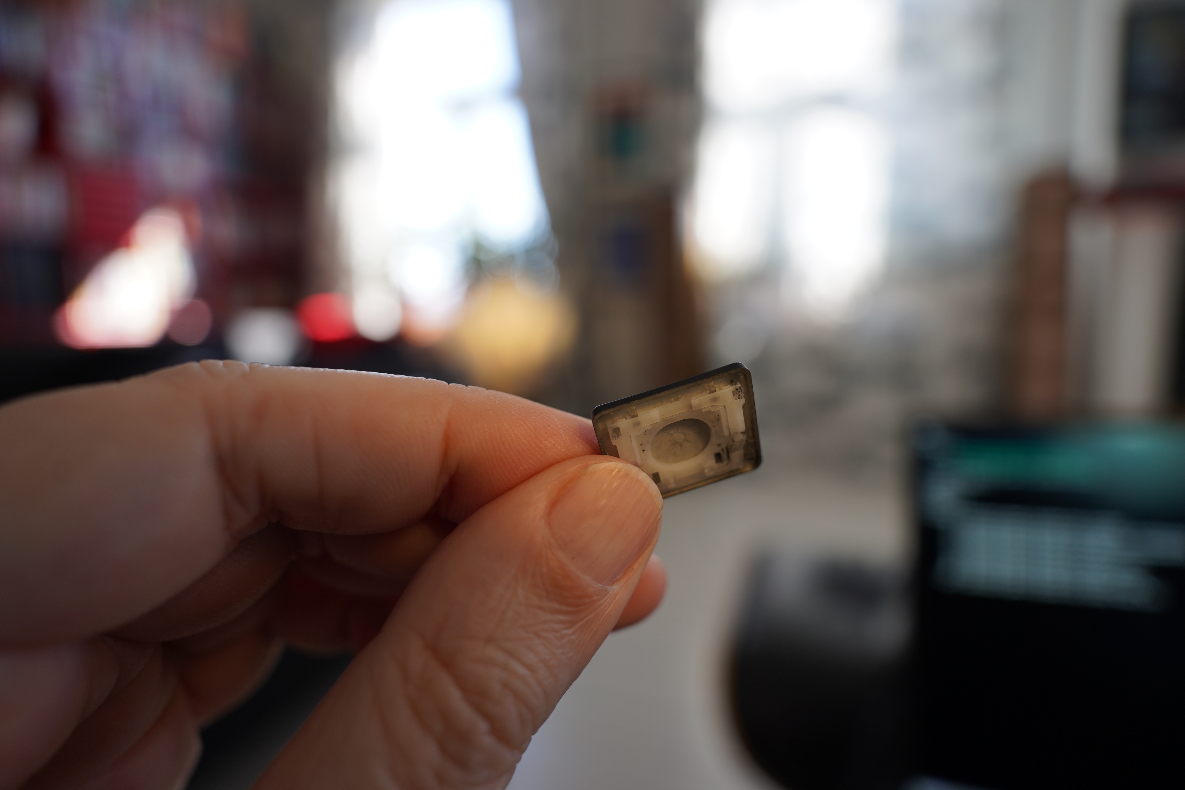 So I broke the key cap into constituent parts… I guess those white bits are called a “hinge”?