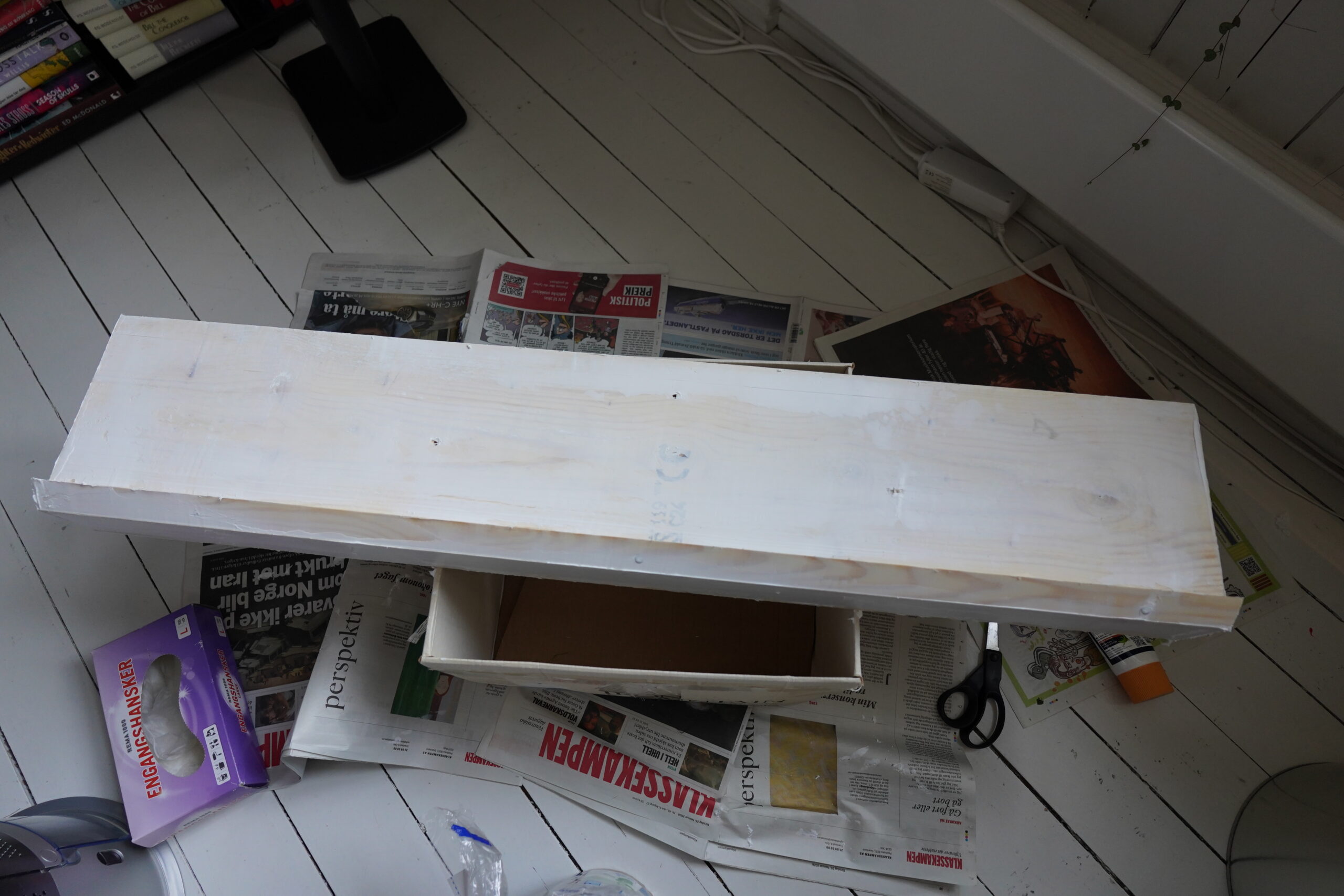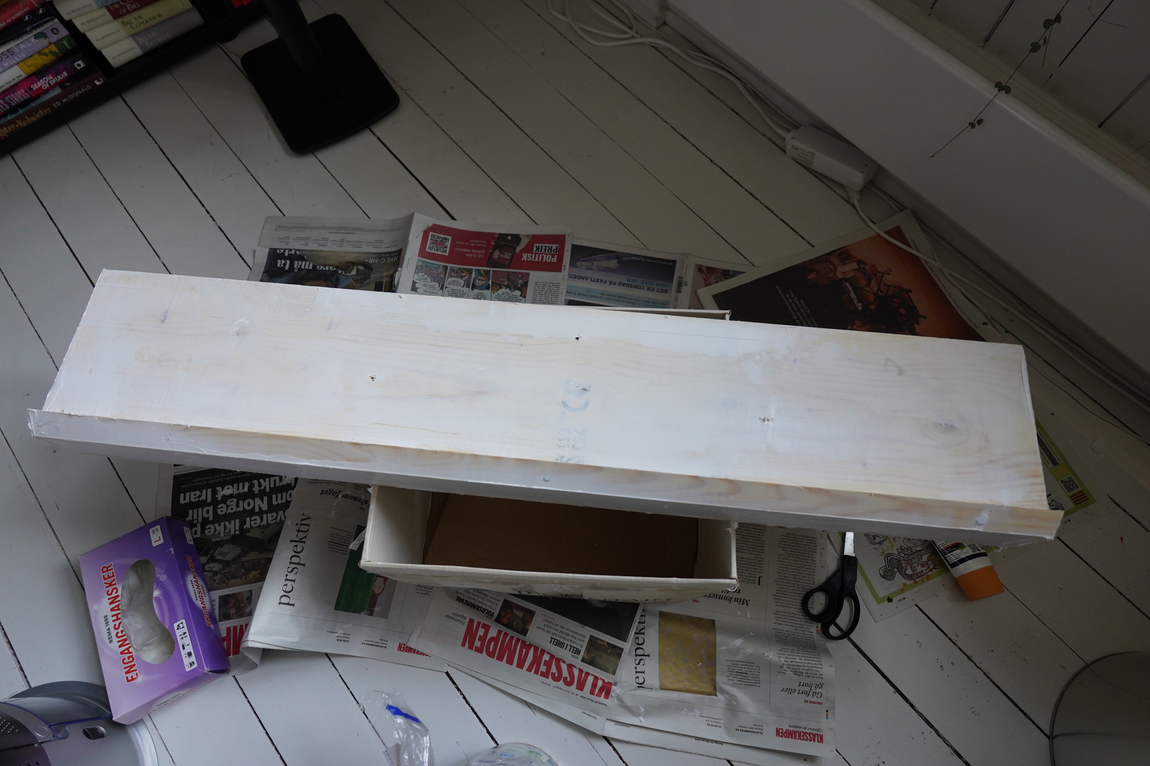 And to fasten it to the floor (I don’t want it to slide out — that’d be ouchey), use more moulding at the front? Er… I shouldn’t do this kind of thing, because I have zero patience when doing carpentry, which is weird — I can spend hours and weeks on getting some program “just right”, but not when it comes to wood.