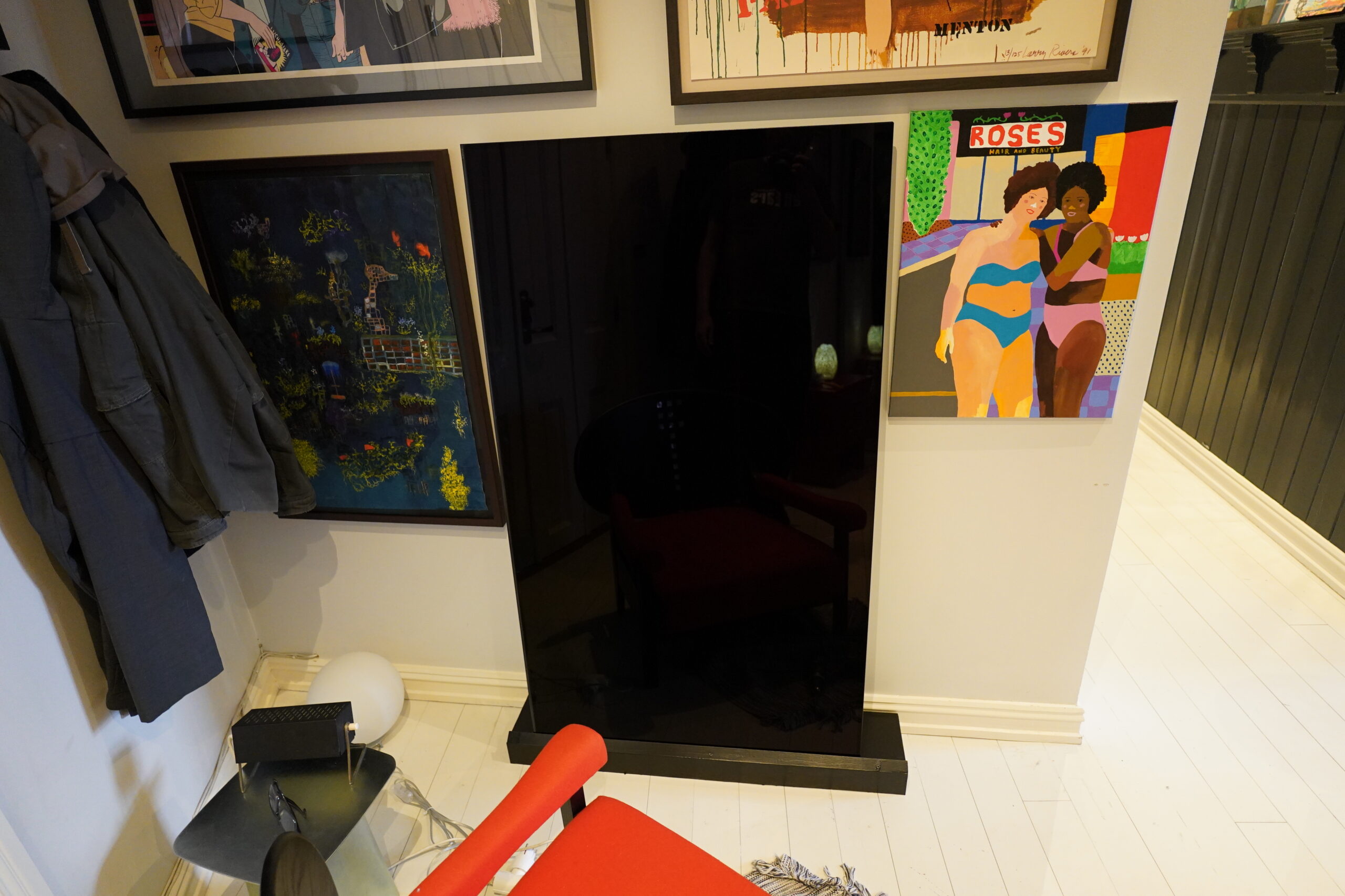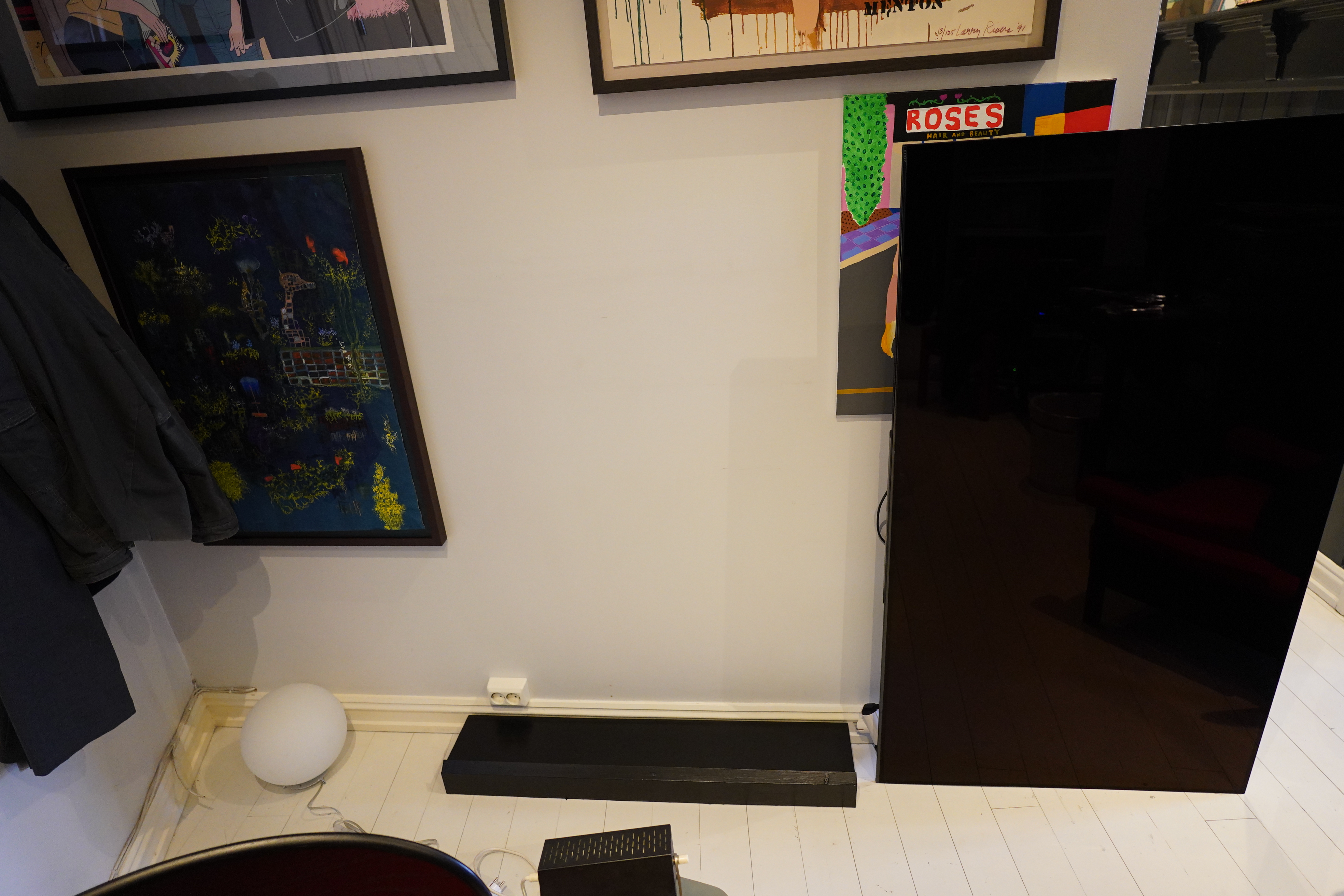 And the TV is resting on the floor. So… perhaps it would be nice to have a… plinth? Like… 10cm high? That’s also a practical advantage, because it makes it easier to clean the floors without being careful with the TV.