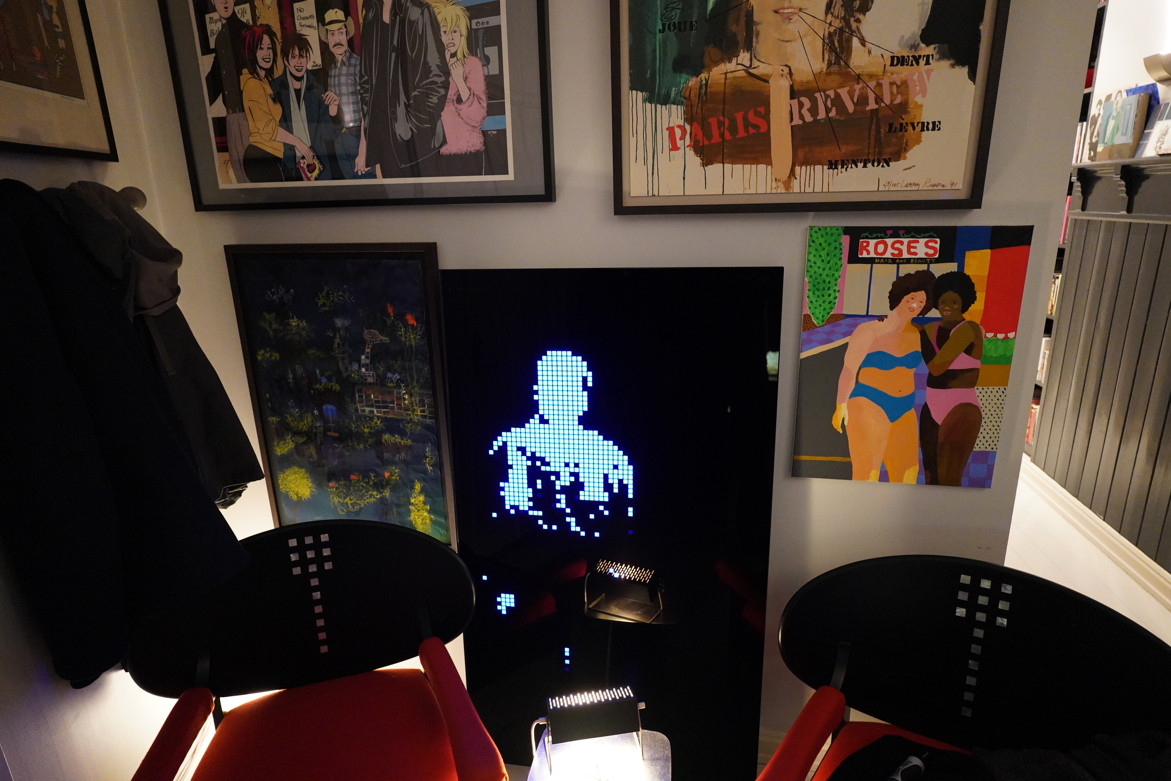 After putting the Beau Travail installation in the hall, I decided to try something I’ve been thinking about off and on for a while — what about having a ton of pictures on one wall? Gertrude style? Does the above look nice?