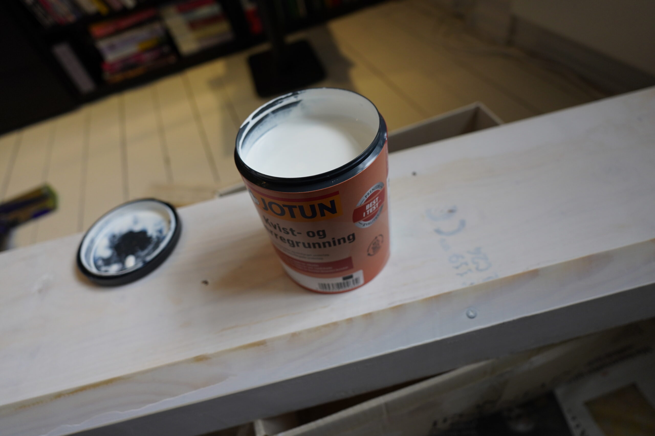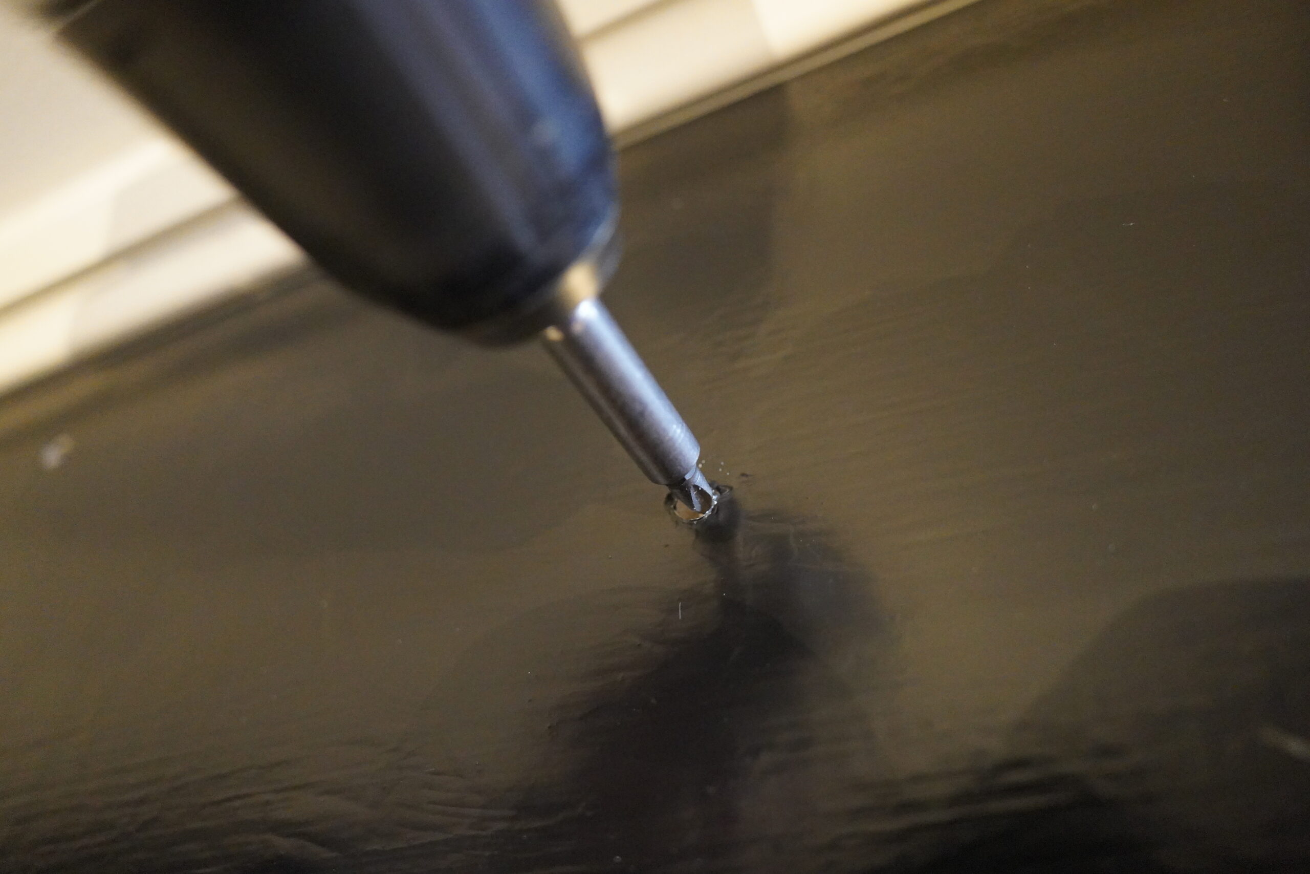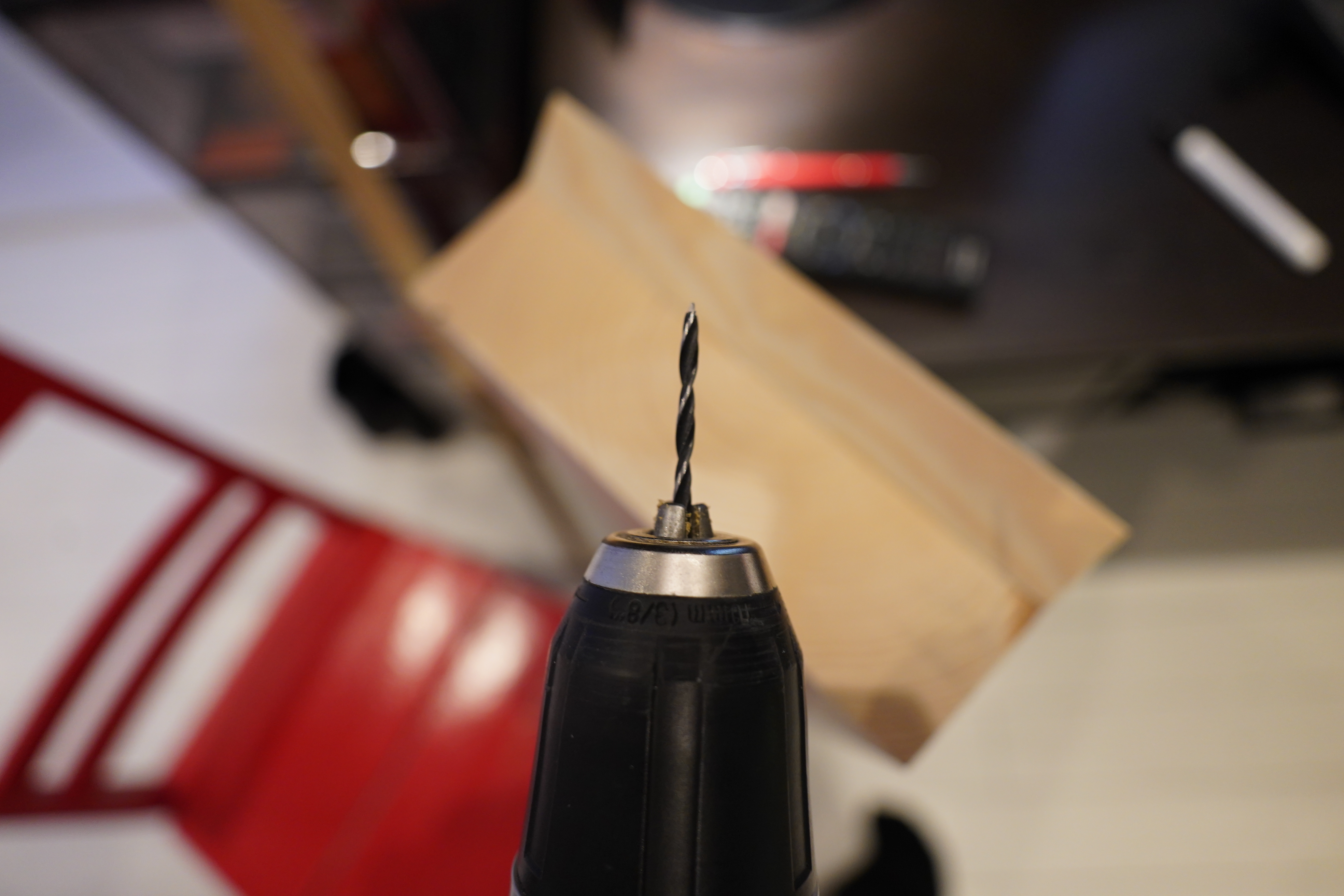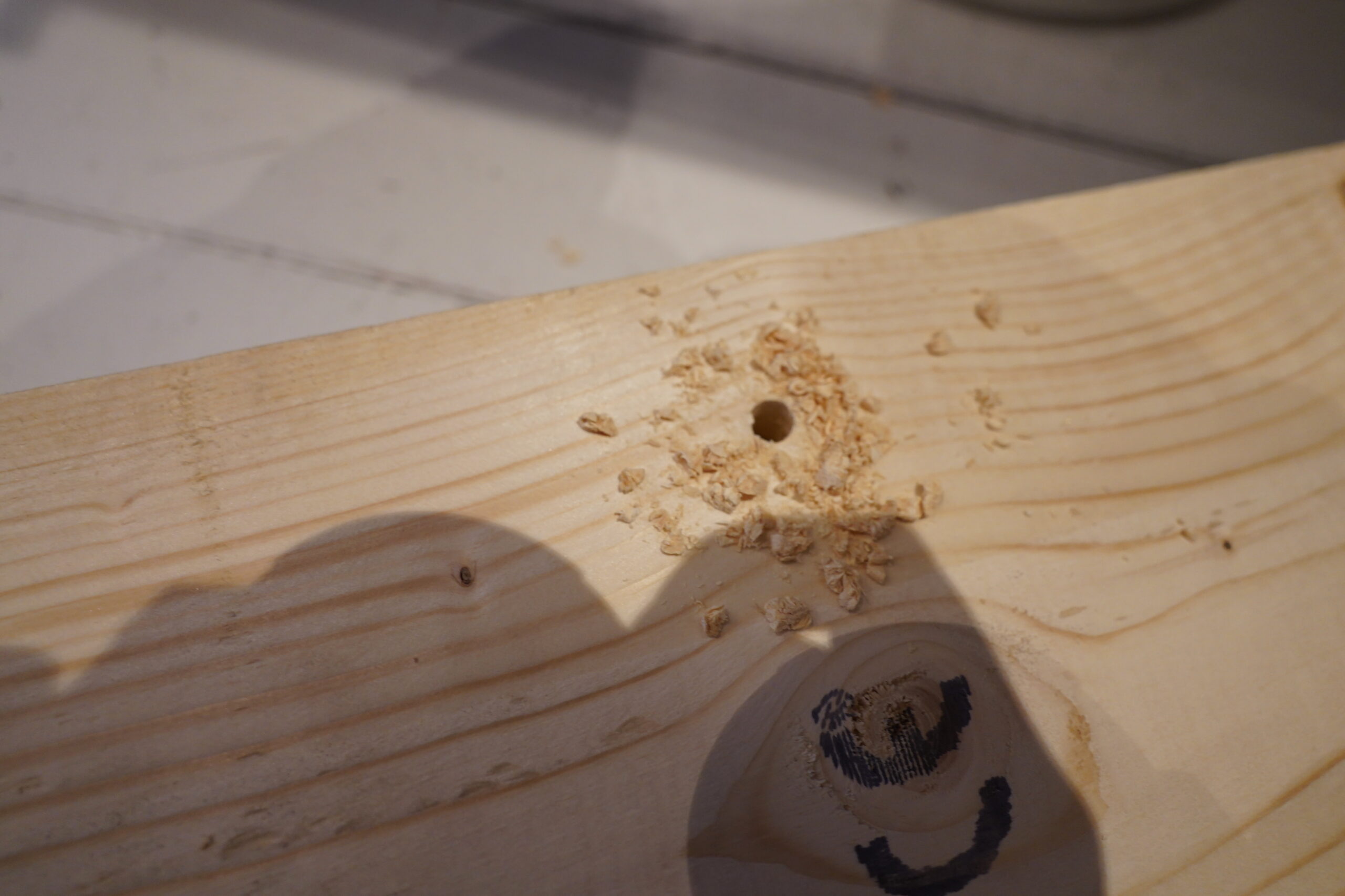 And to fasten it to the floor (it’s a wooden floor (from the 90s), but painted, so it’s not sacrilege to screw something into it), I can drill 80% into the plinthy plank, and the screw it the rest of the way.