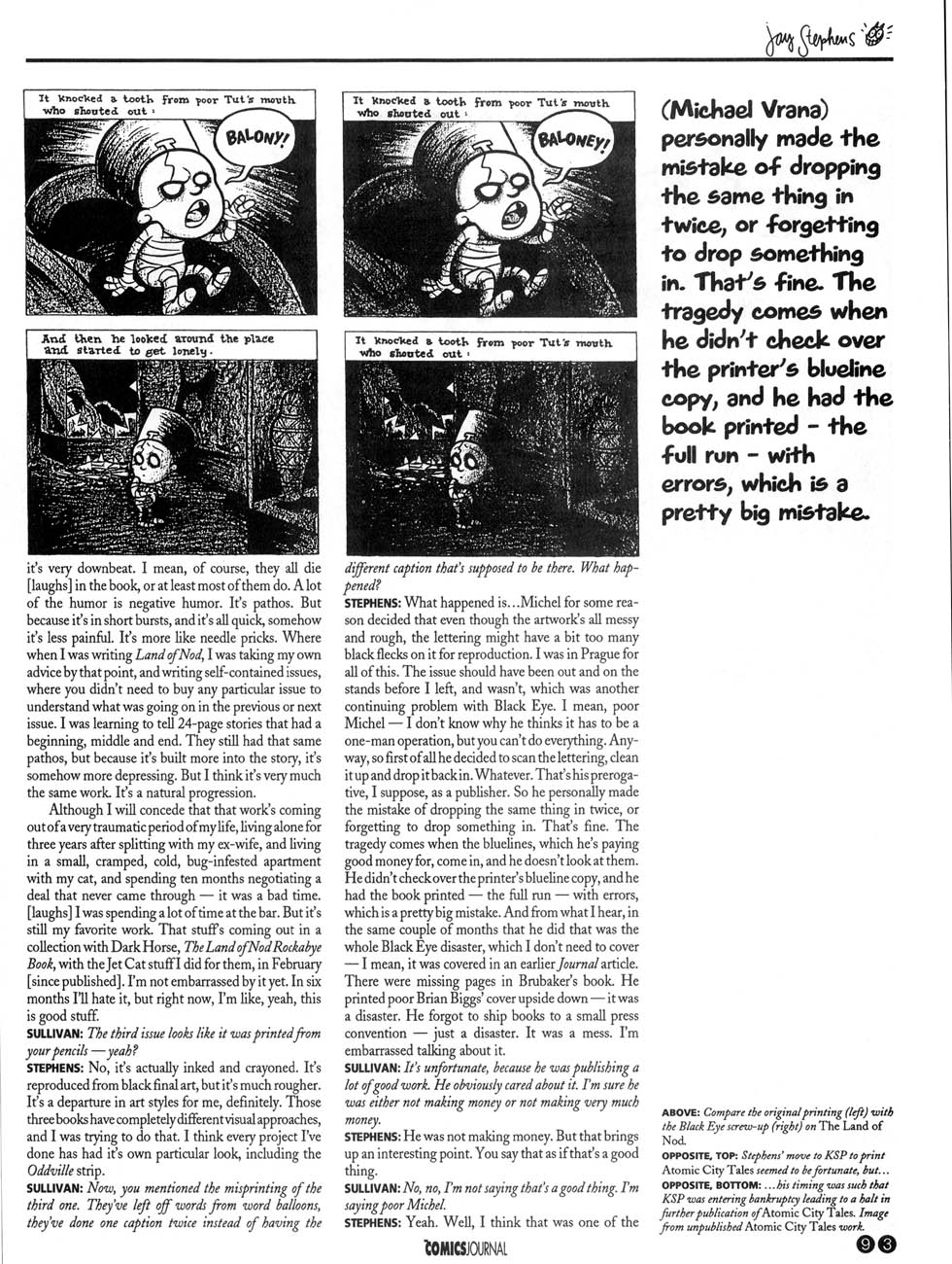 Jay Stephens is interviewed back in the 90s about publishing with Black Eye: