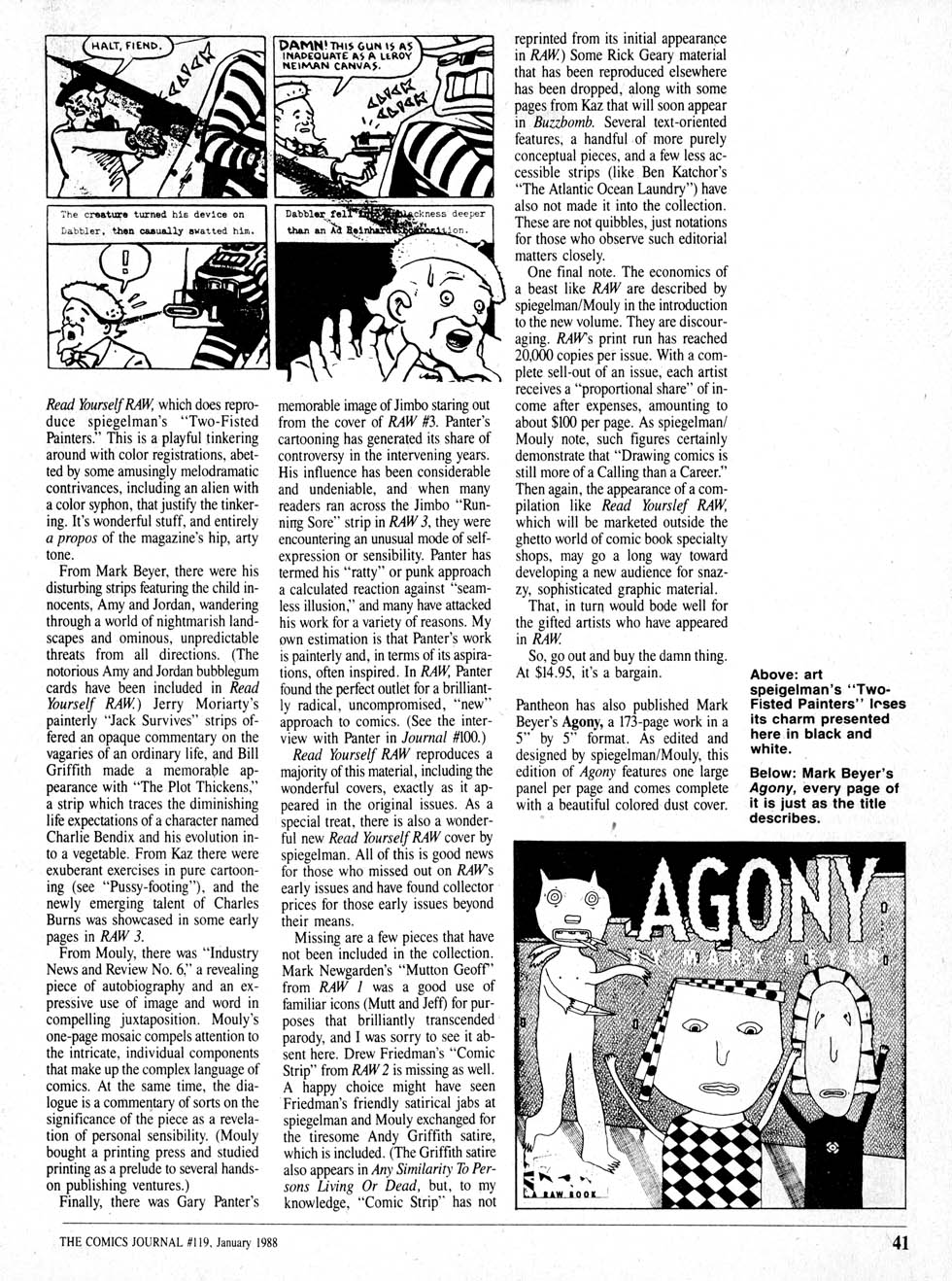 The first issue of the Penguin version of Raw was generally thought of as pretty disappointing — even by the editors themselves. They were looking for new, exciting talent working in the idiom loosely defined by Raw, and couldn’t really find a lot, so the first issue was dominated by short pieces by people who’d already done stuff for Raw.