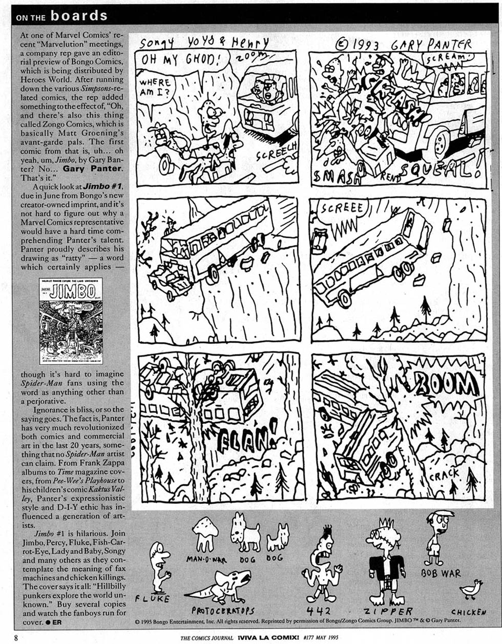 But I also want to say that I really admire Groening (and Bongo) for sticking to their guns and going ahead with publishing Jimbo even though nobody in the Direct Market wanted to buy them. At 500 copies, it had to be a money sink. On the other hand, with Simpsons money…