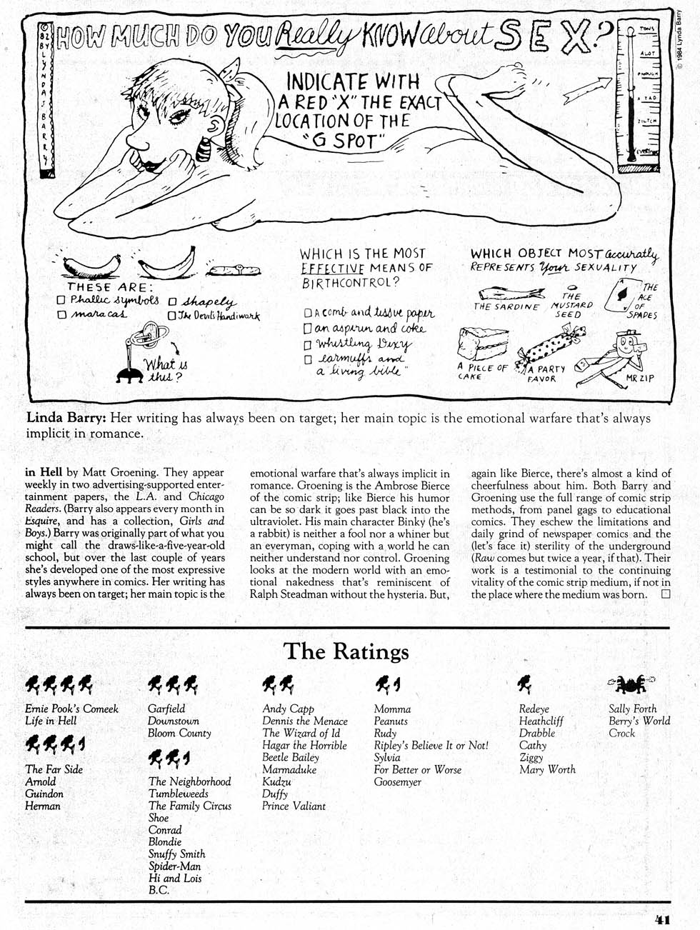 My first exposure to Lynda Barry was in The Comics Journal #92: